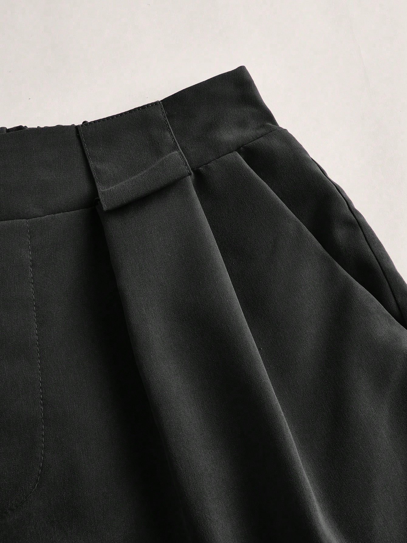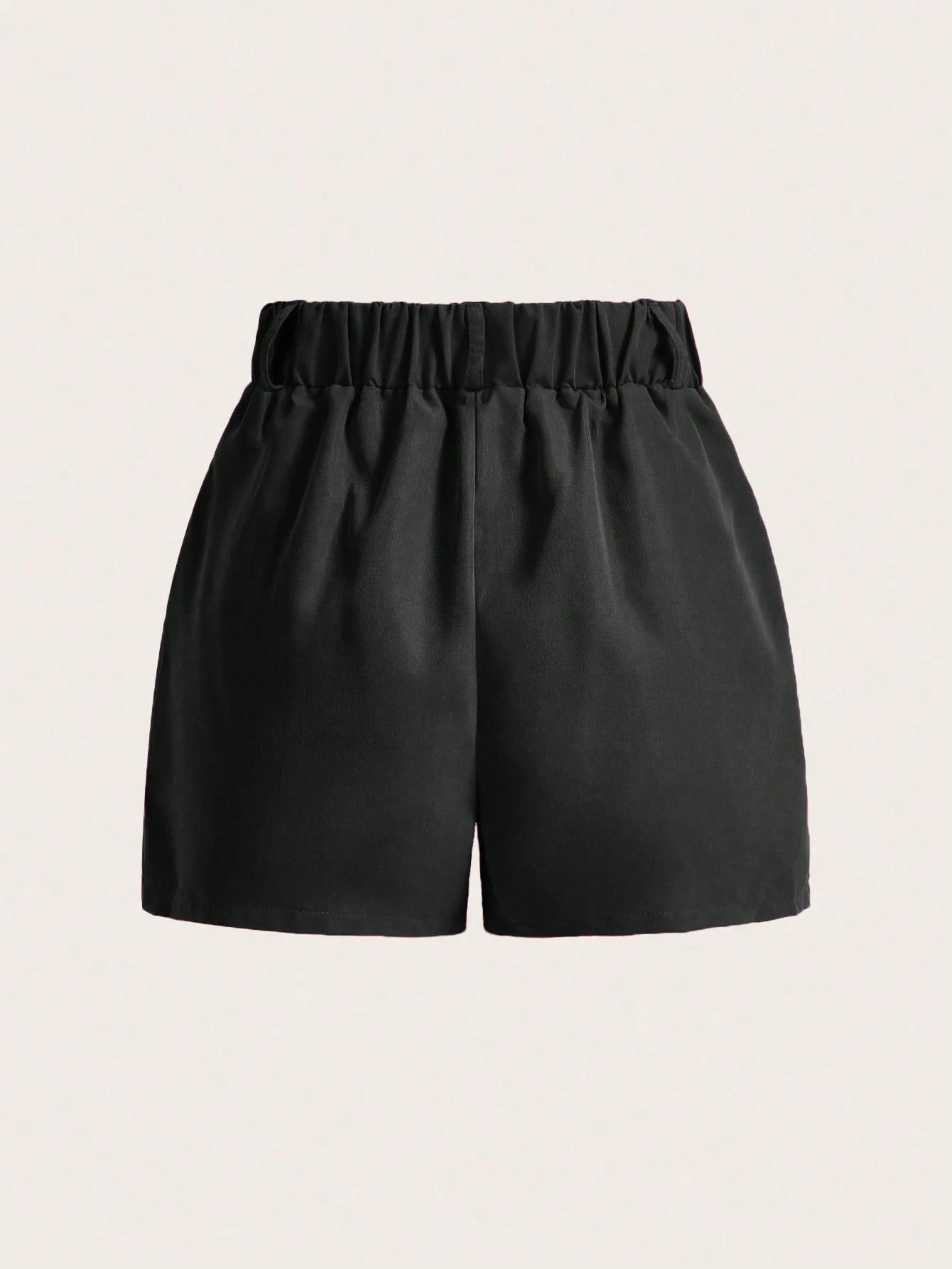 Pantalones cortos casuales sueltos de mujer con bolsillos y pliegues de unicolor
