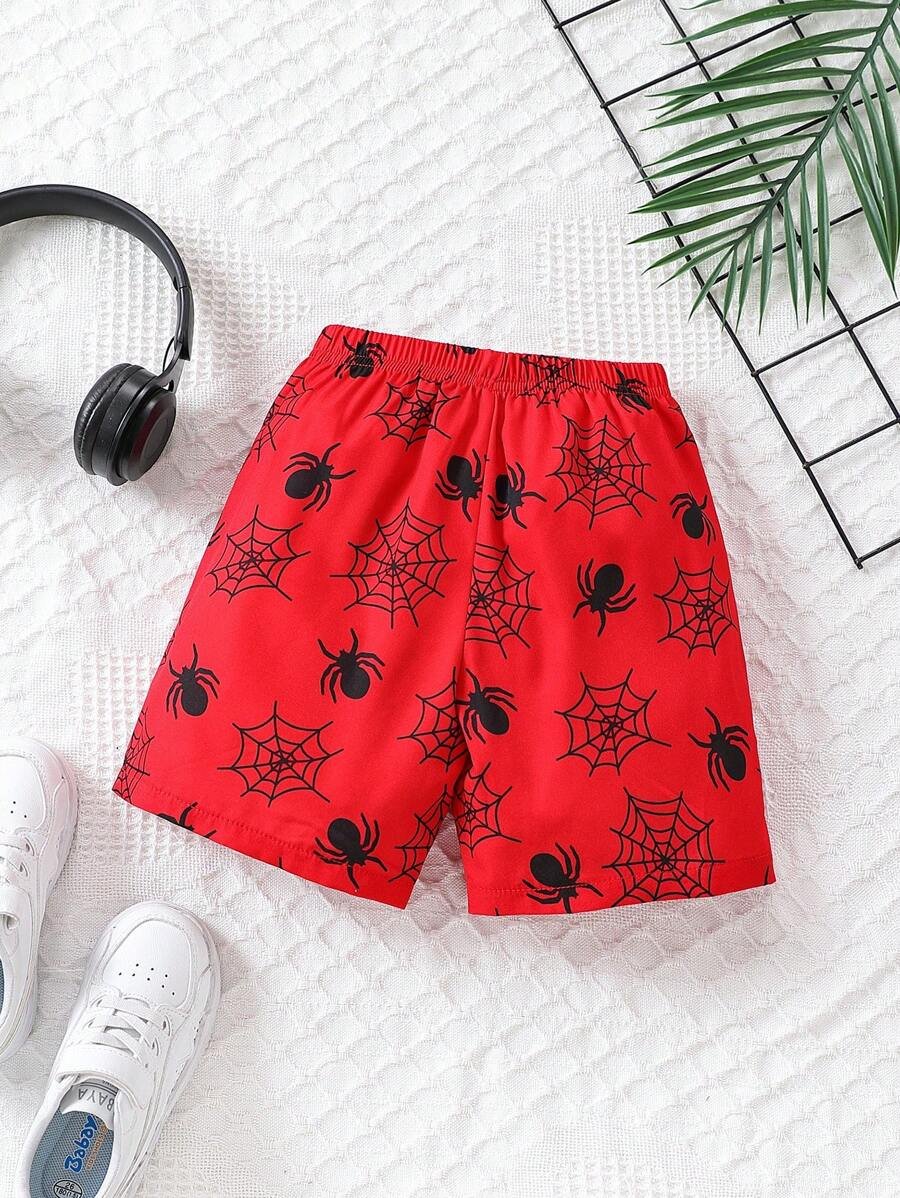 Pantalones Cortos De Cintura Anudada Y Estampado De Ara?a Para Ni?os