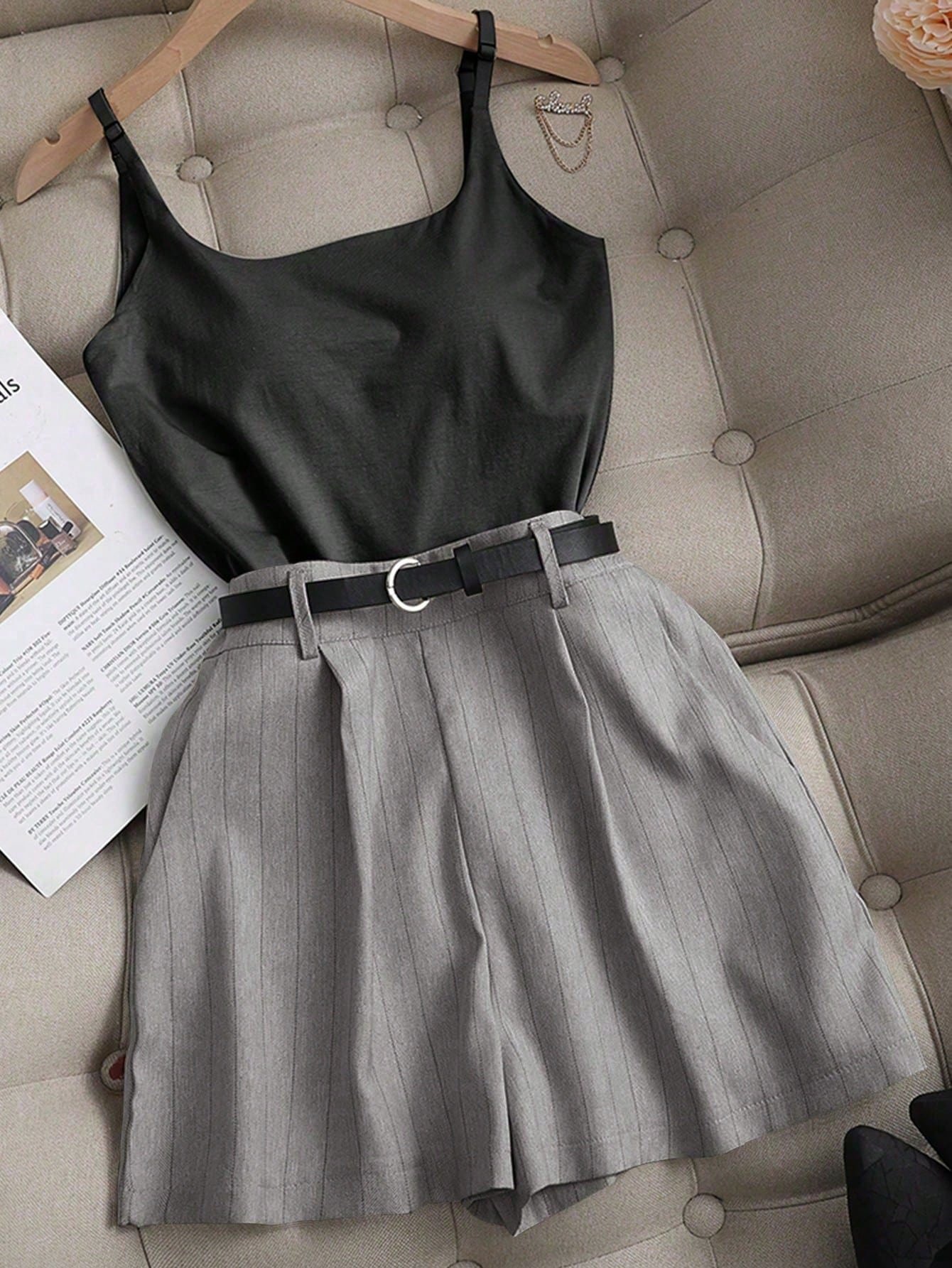 Pantalones cortos de mujer de unicolor, cintura alta, casuales