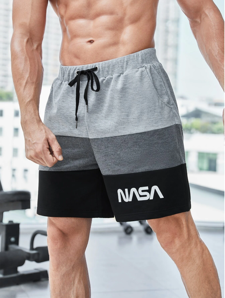 Pantalones cortos deportivos lisos de color negro con cintura con cordón