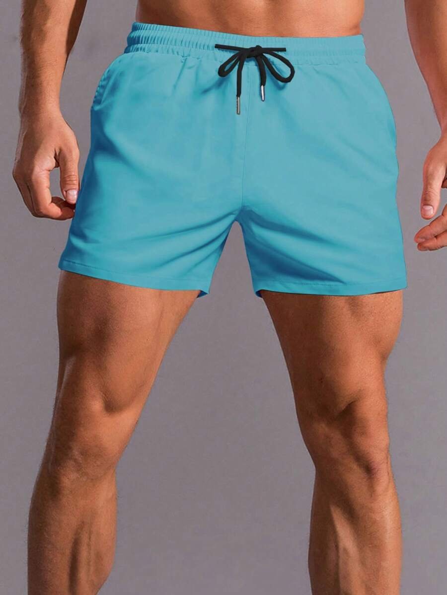 Pantalones Cortos Holgados De Color S?lido Para Hombres Con Cintura Ajustable Y Cord?n
