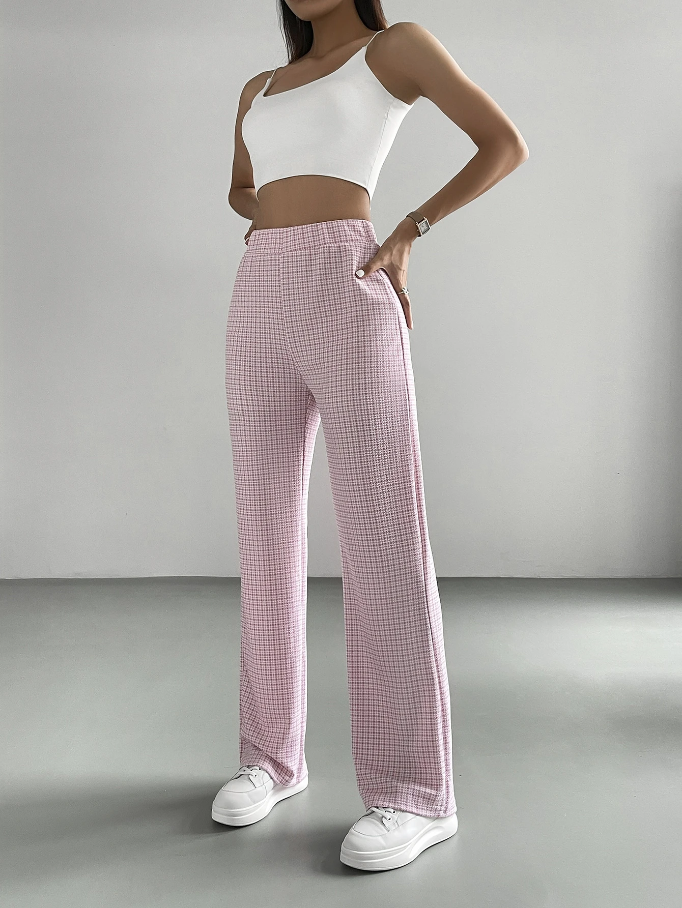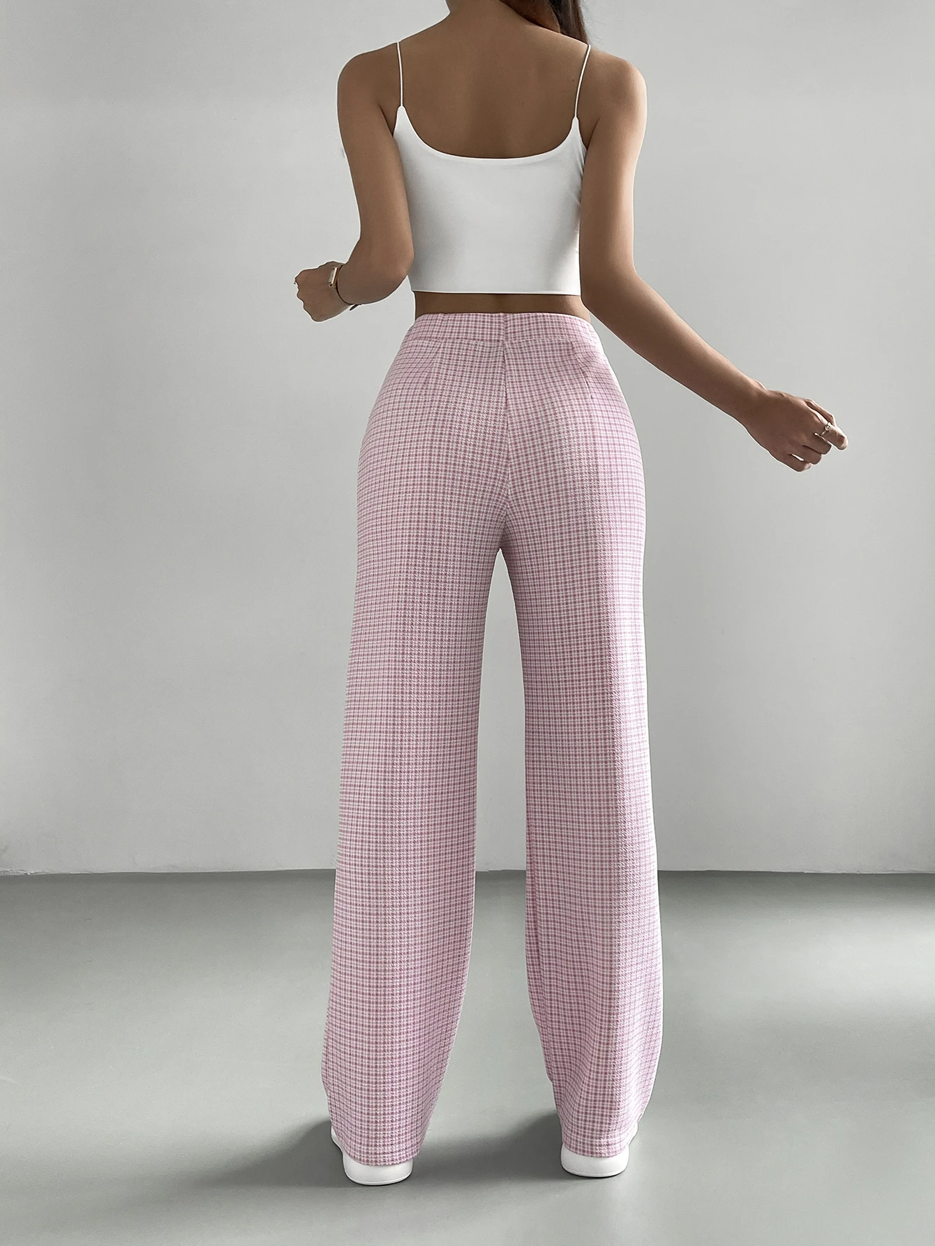 Pantalones De Cintura Alta De Cuadros Rosados