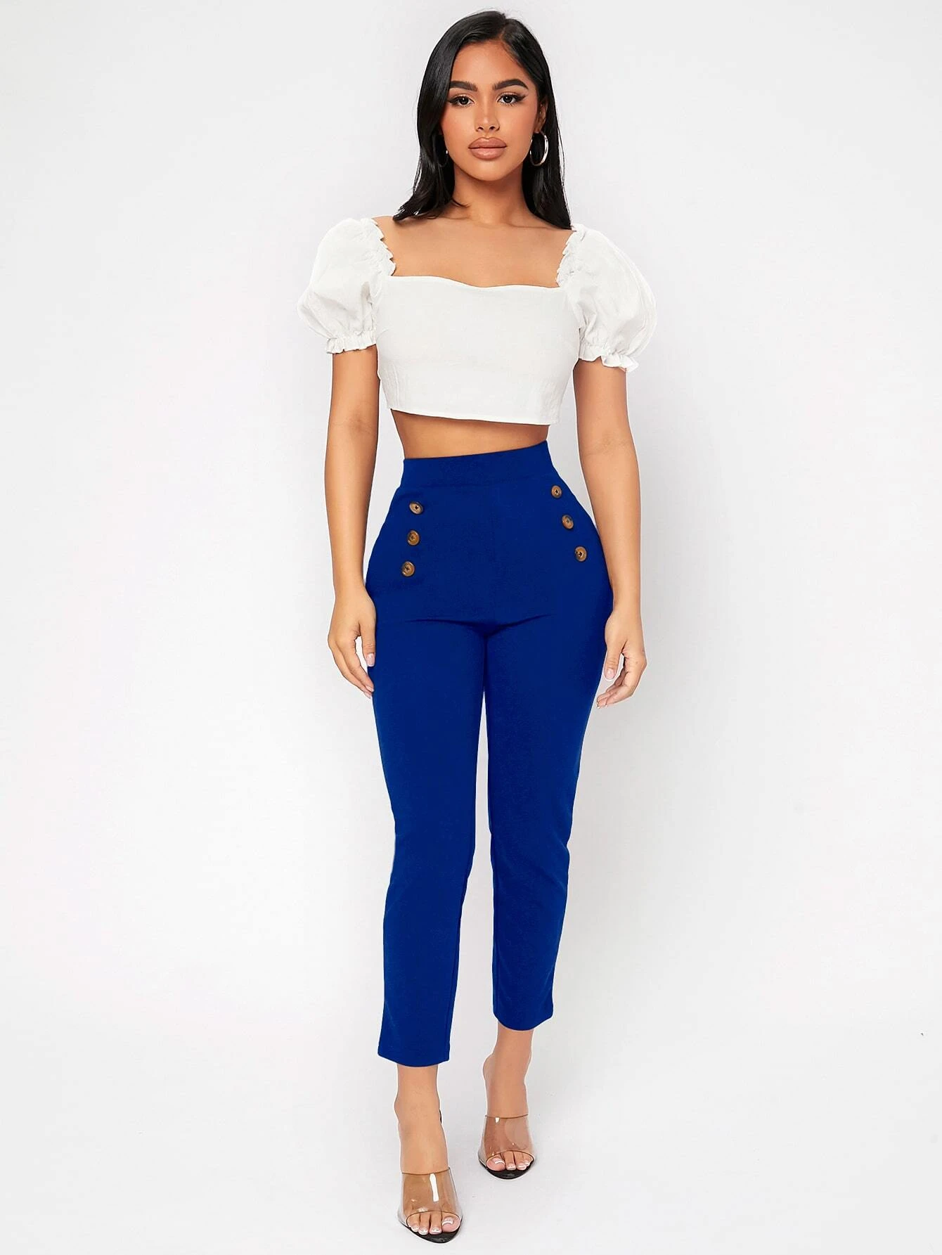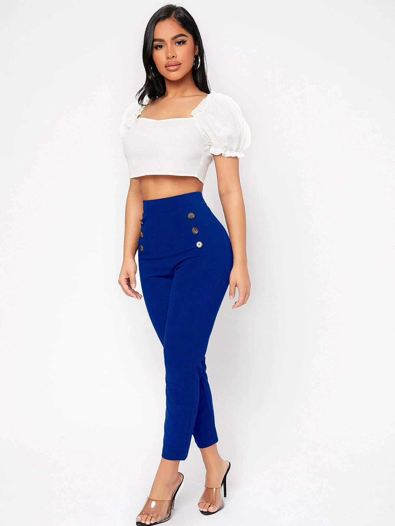 Pantalones de talle alto con botones delgado recortado