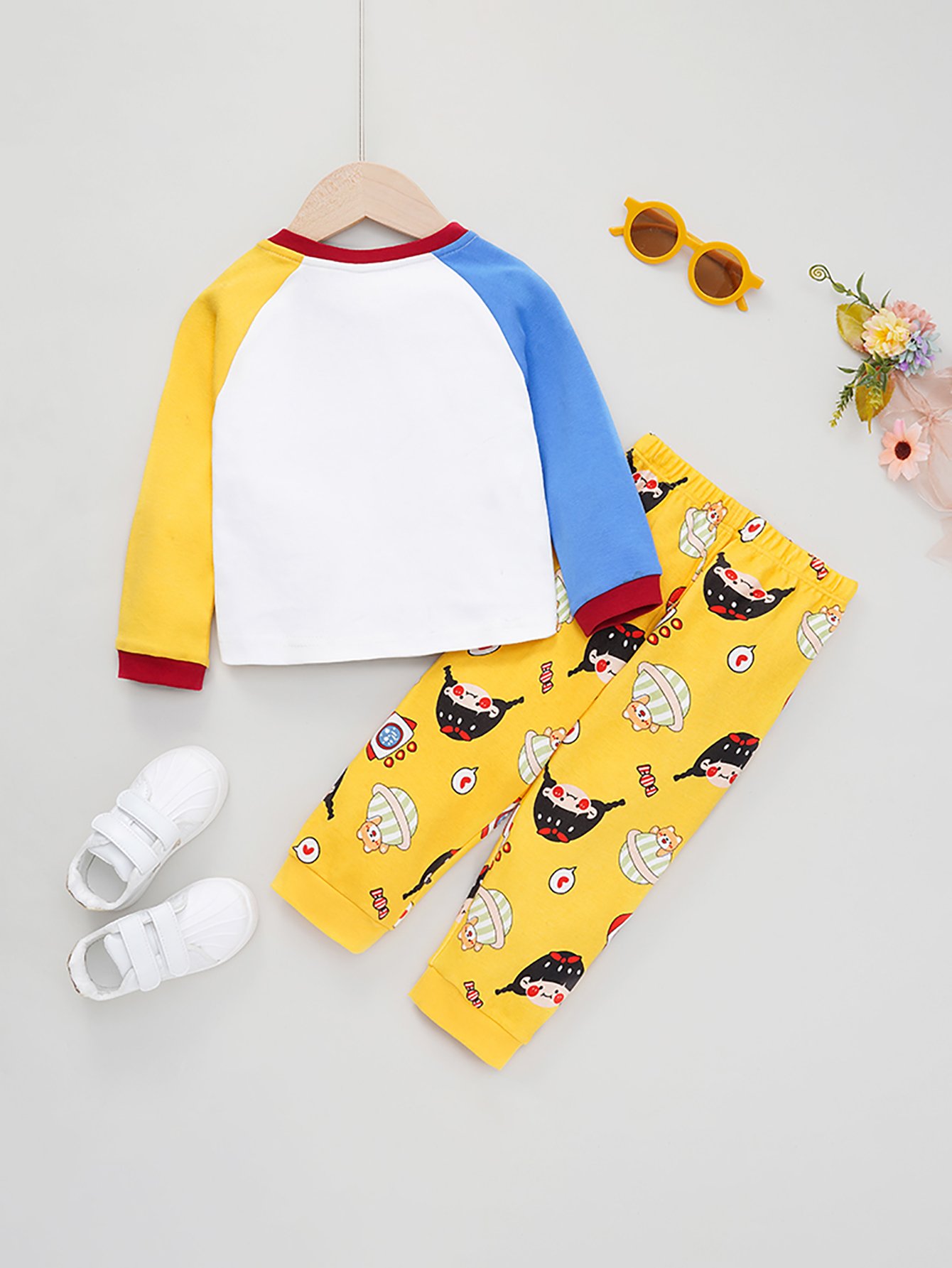 Pantalones estampados y top de bloque de color para ni?a peque?a