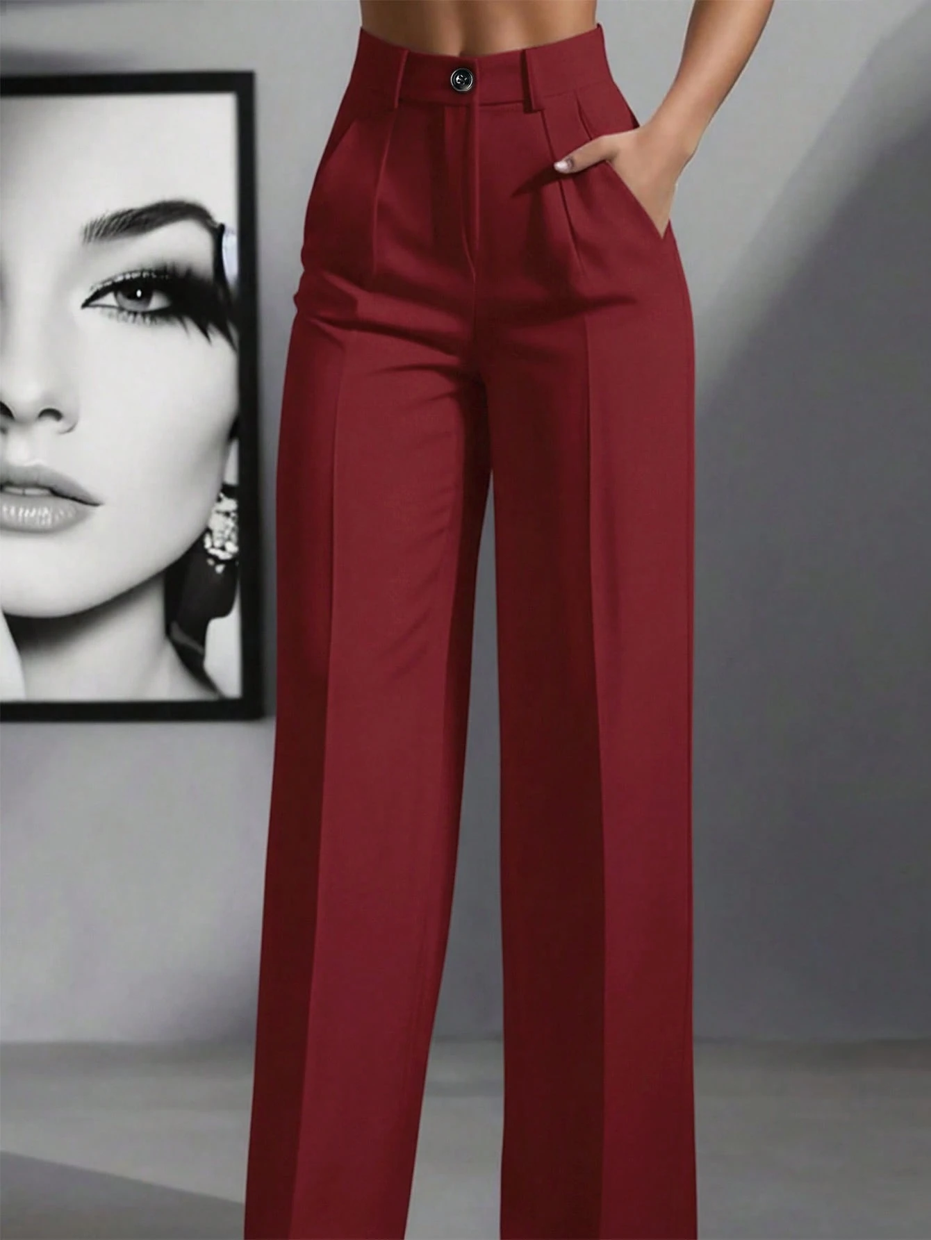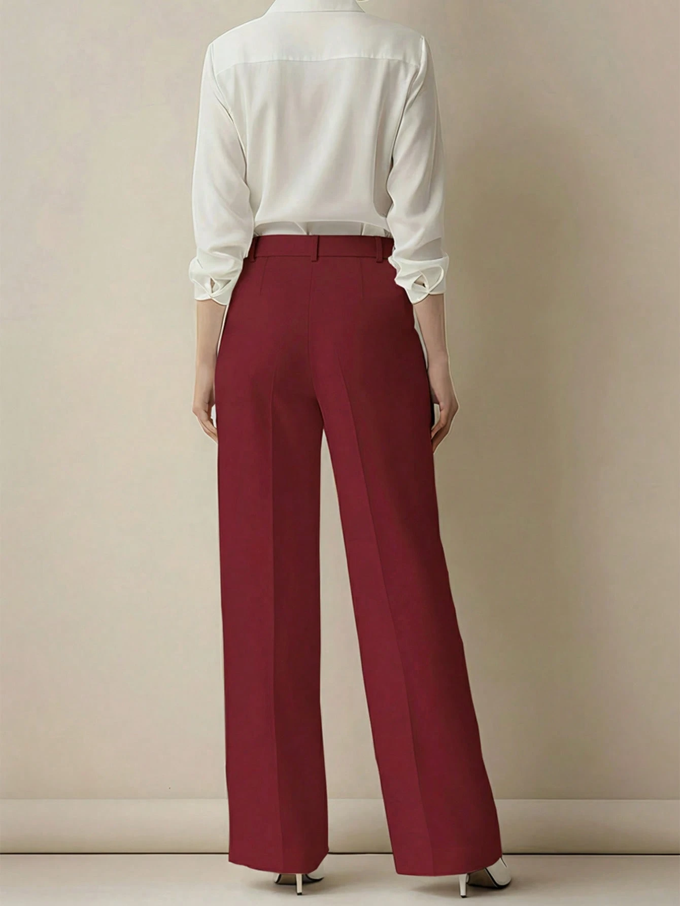 Pantalones holgados de cintura alta con pliegues, aptos para el trabajo y el uso casual