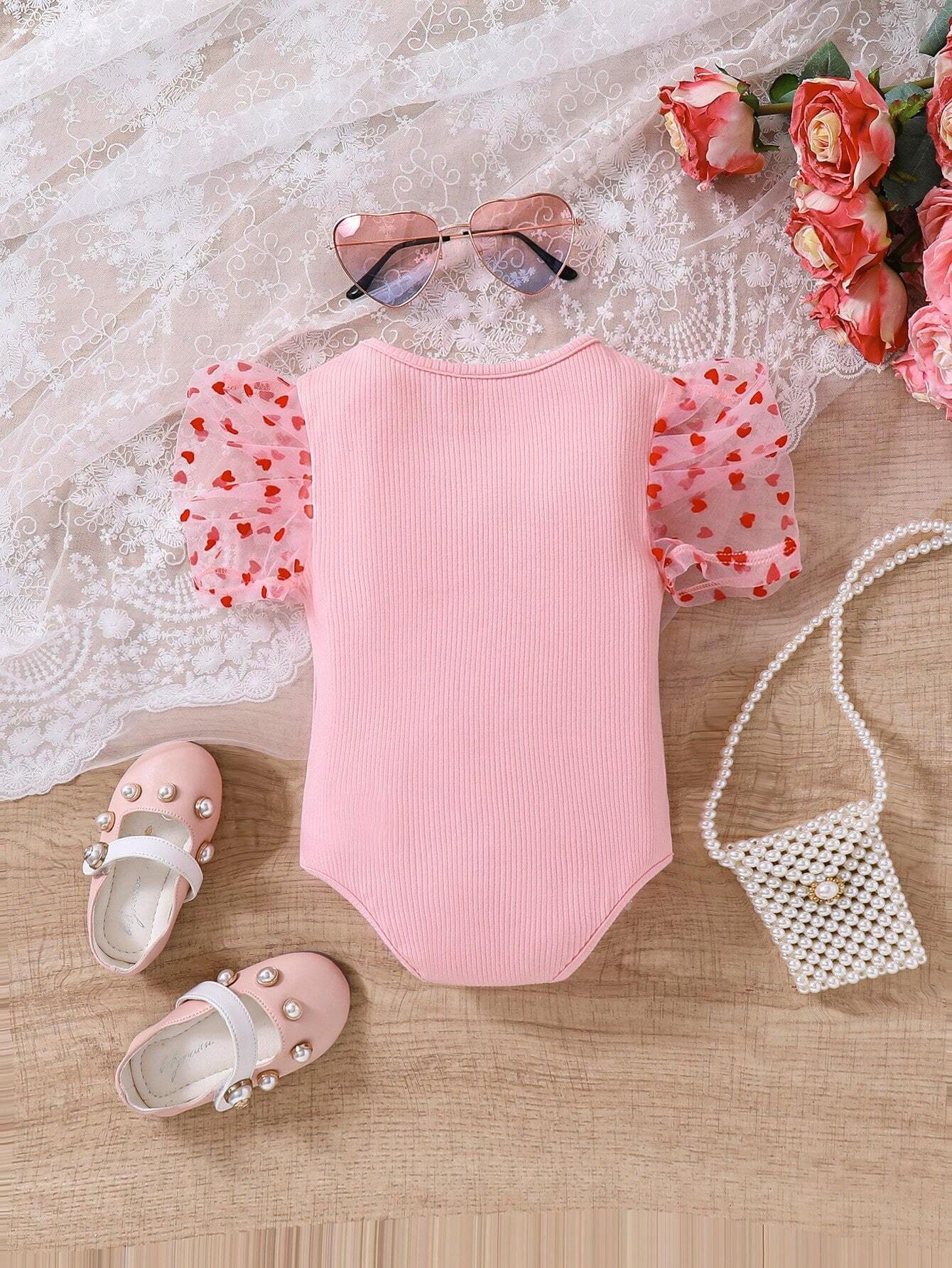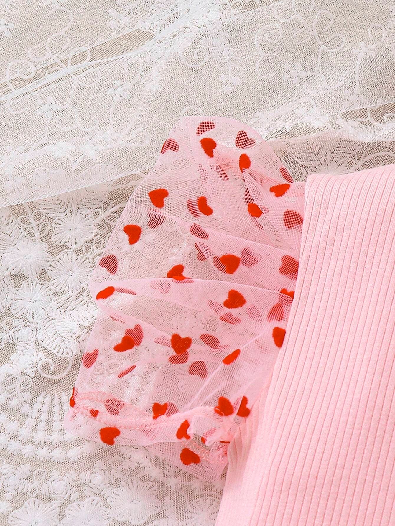 Pelele Rosa De Beb? Ni?a Tejido Con Detalle De Coraz?n Y Panel De Malla En La Parte Inferior