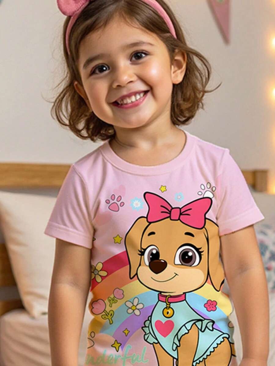 Pijama de niña joven con patrón lindo de cachorro, de ajuste ceñido