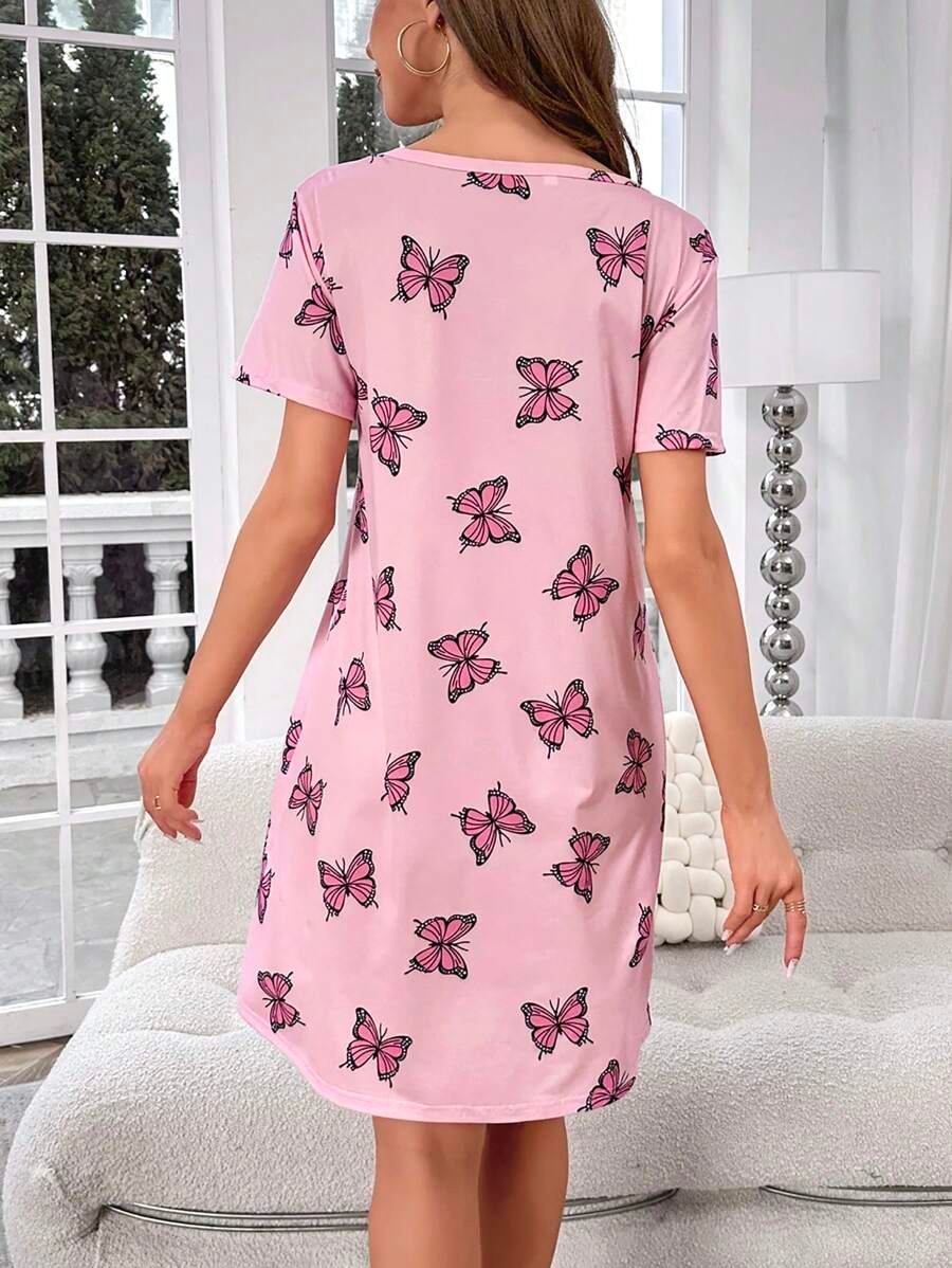 Pijama vestido con estampado de mariposa