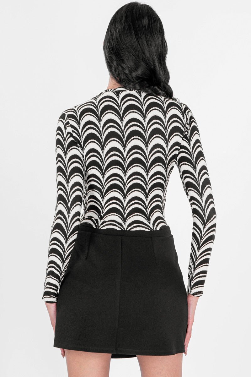 Playera con ondas manga larga cuello circular.  Composición: 96% poliéster, 4% elastano.