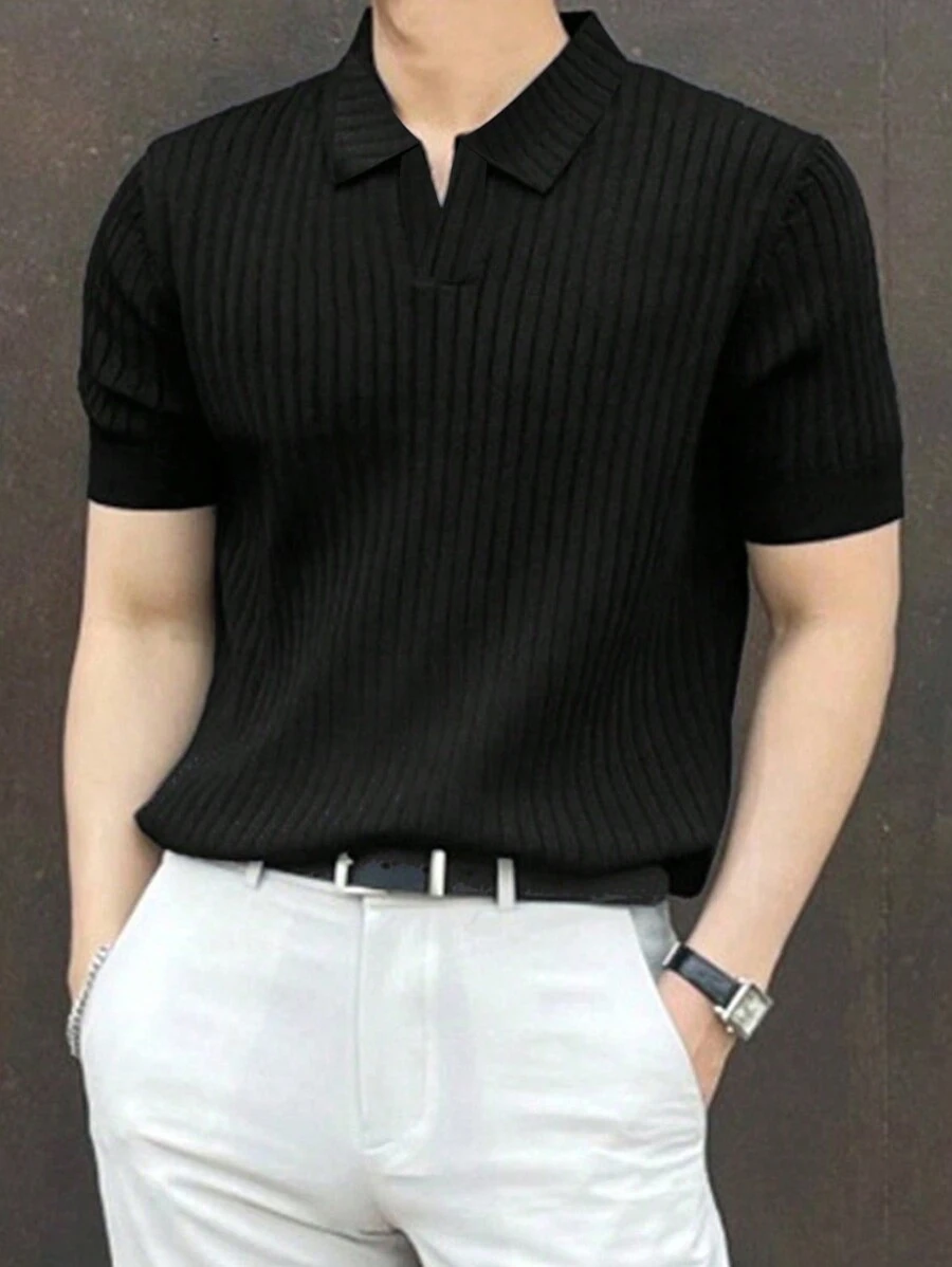 Playera Polo Sólida A Rayas Para Hombres