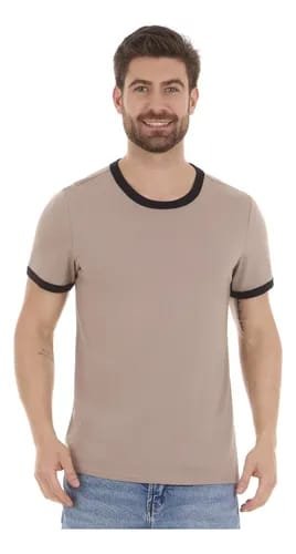 Playera Ringer Negra Cuello redondo hombre Manga Corta
