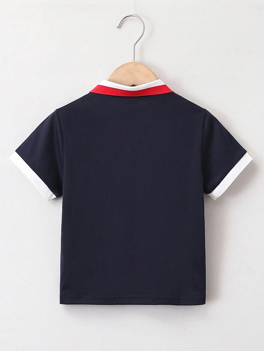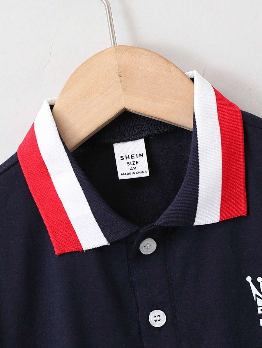 Playera Tipo Polo De Manga Corta Con Letras Impresas Para Niños