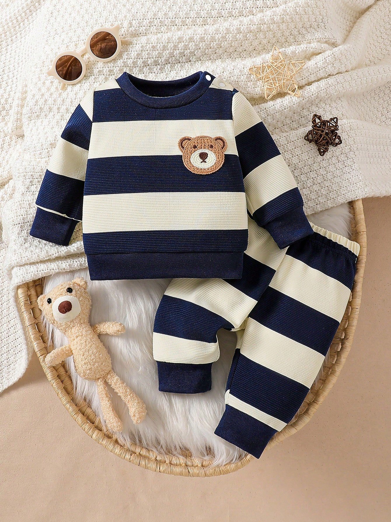 Recién nacido bebé niño top de manga larga con cuello redondo con patrón de oso