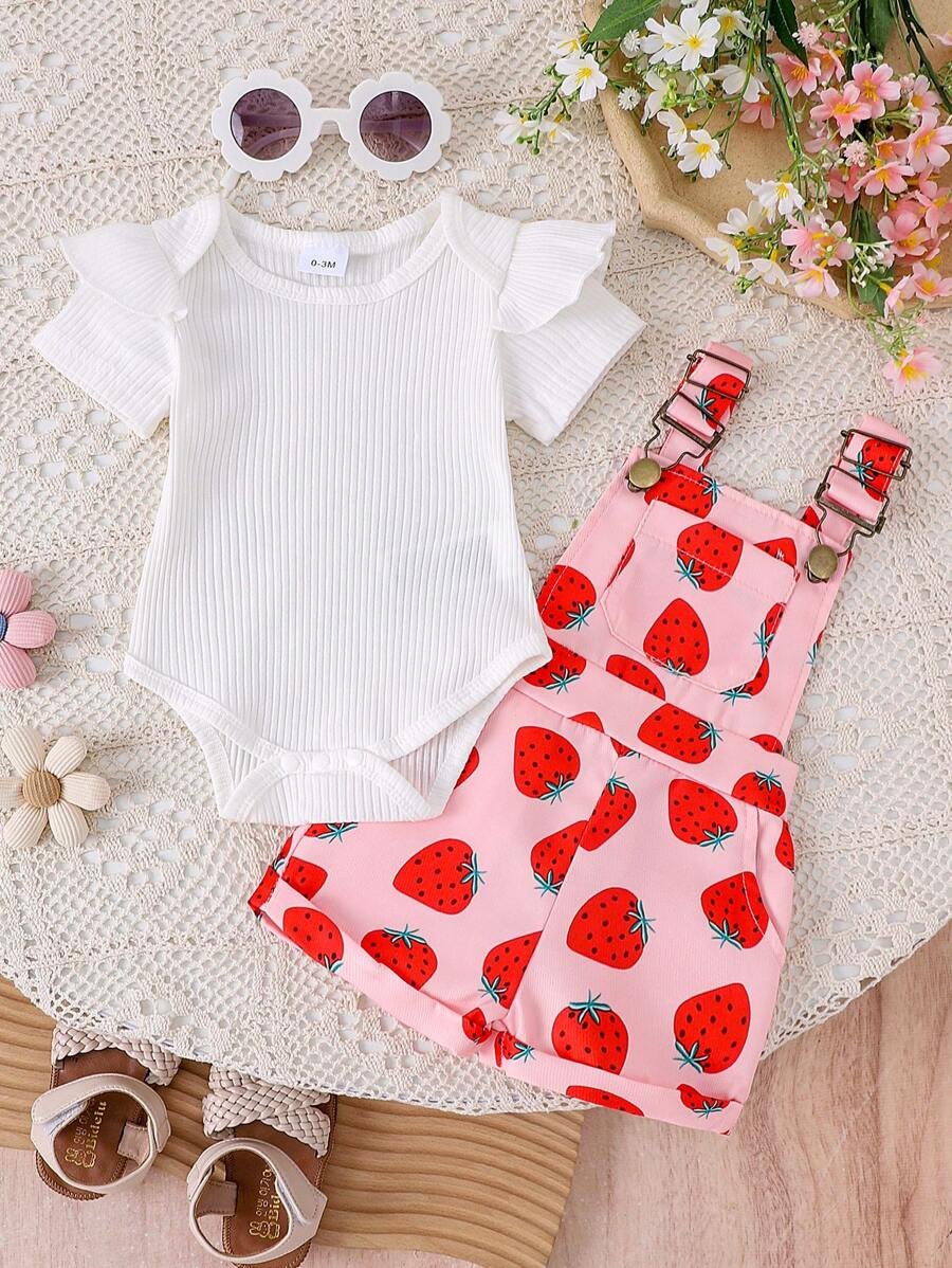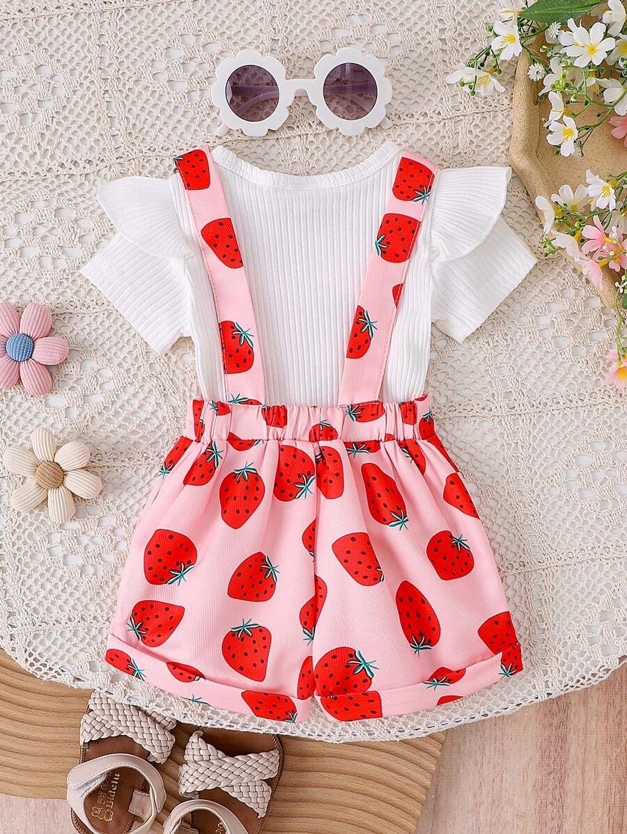 Set de 2 piezas de peto + pantalón de babero de manga corta