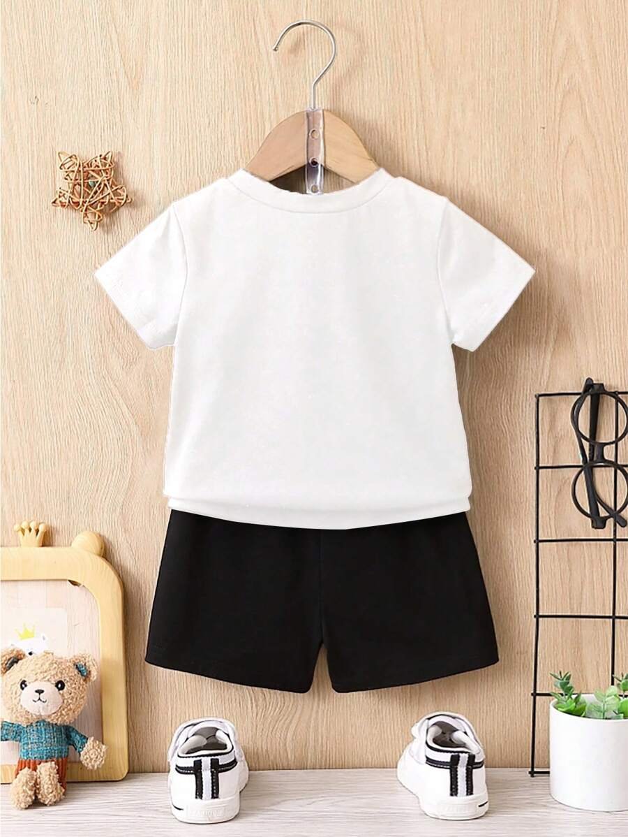 Set de 2 piezas para bebé niño con camiseta y pantalón corto con estampado de vaca