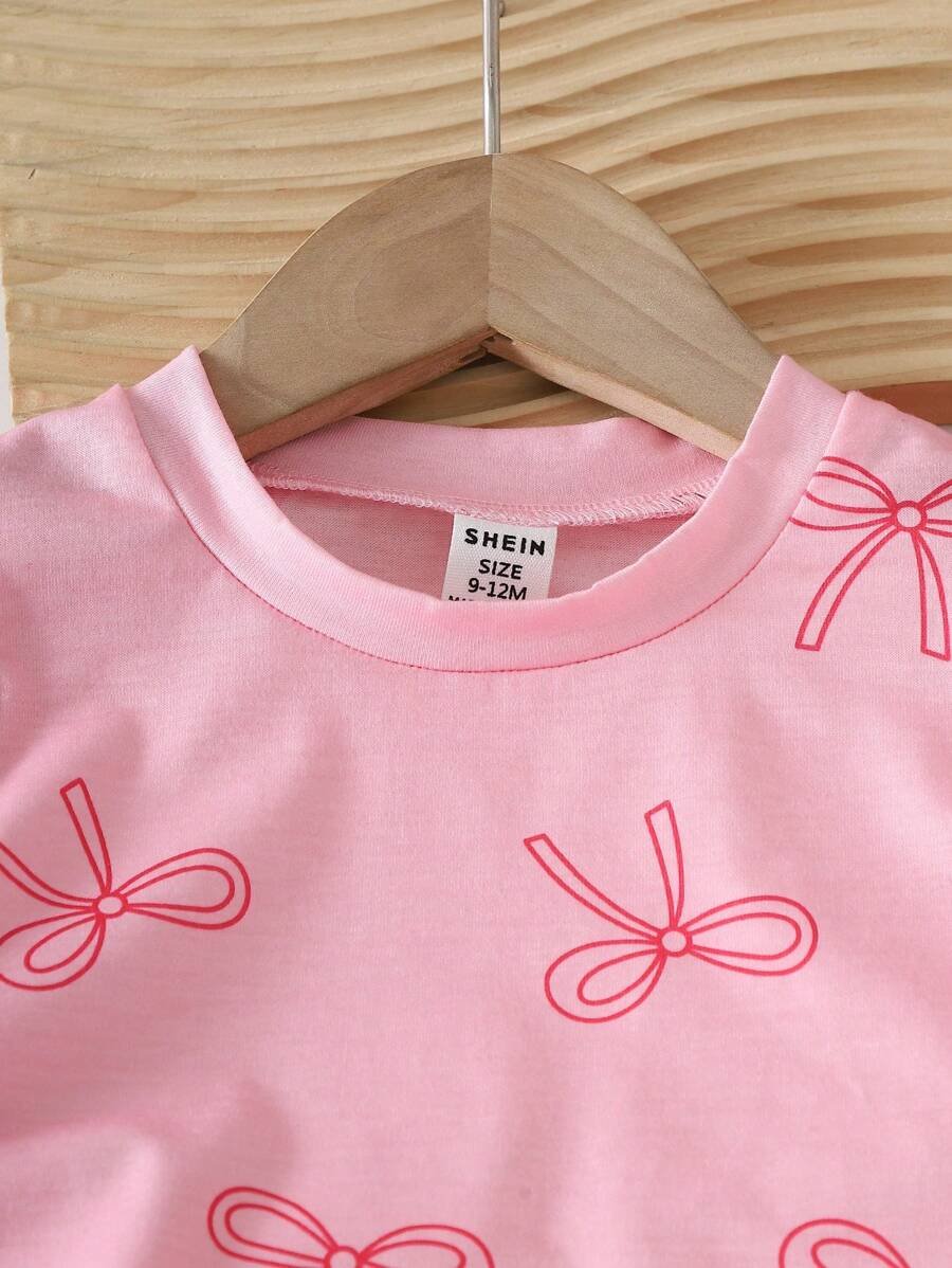 Set de 2 piezas para niñas bebé con top de manga corta con estampado de mariposa