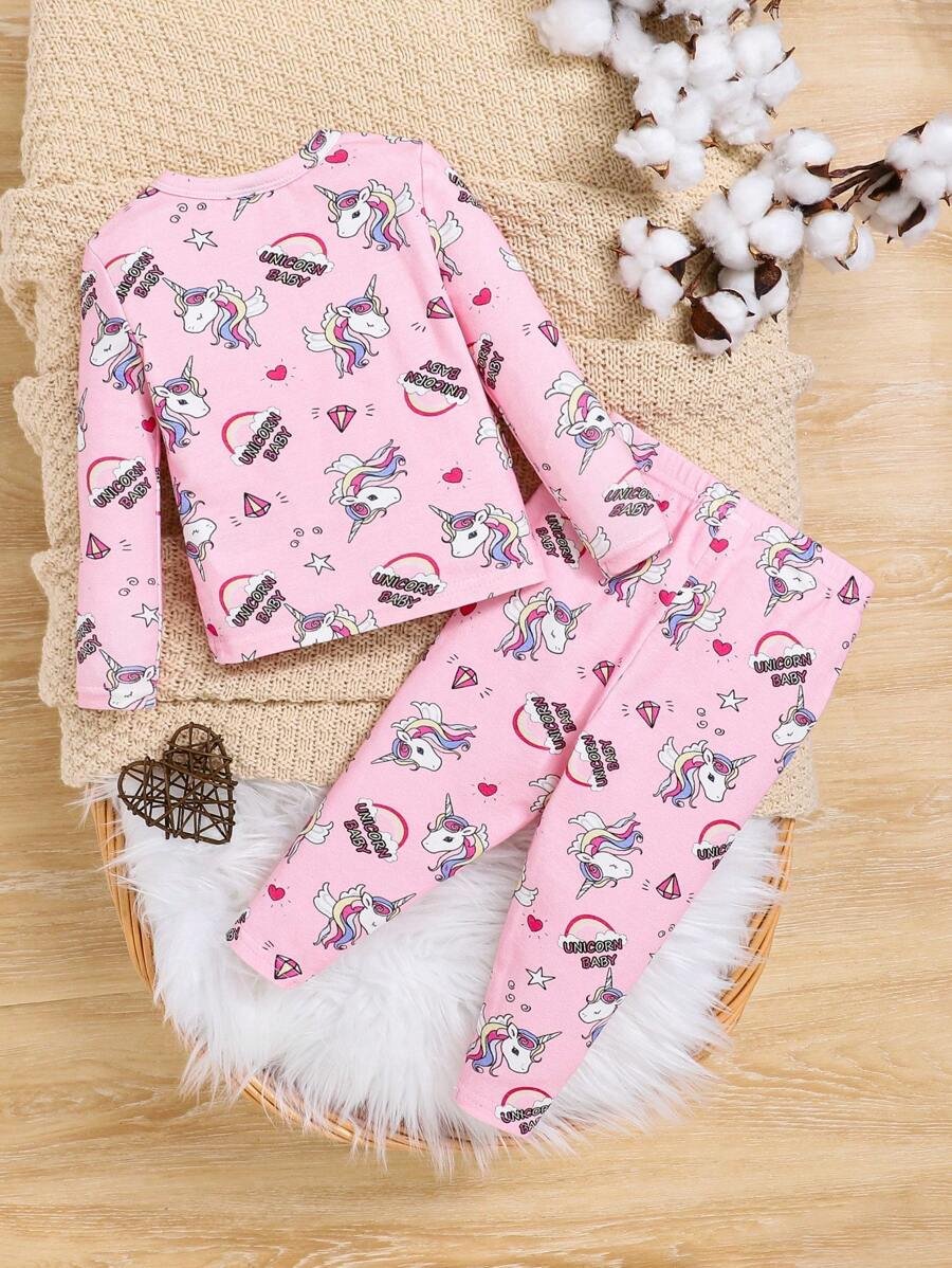 Set De pijama para beb? ni?a con estampado de unicornio y letras