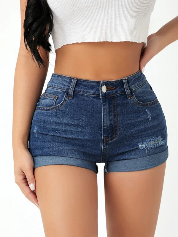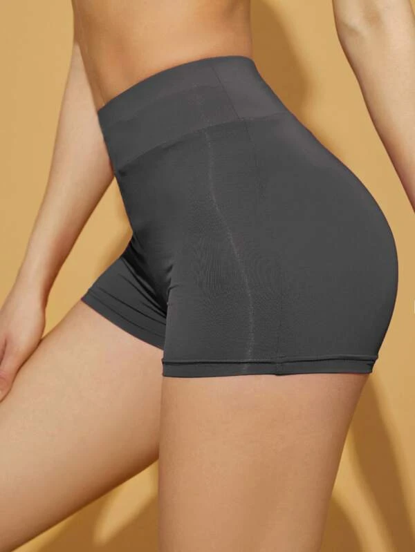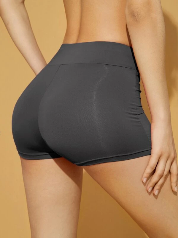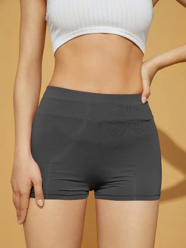 Shorts biker unicolor de cintura ancha