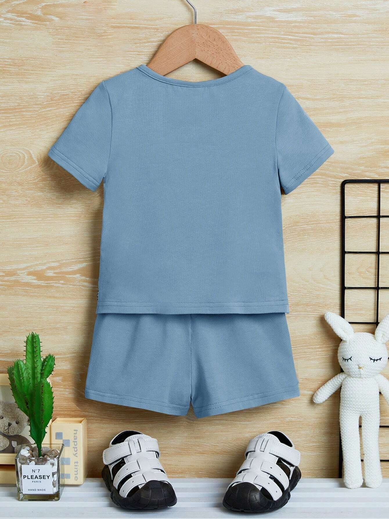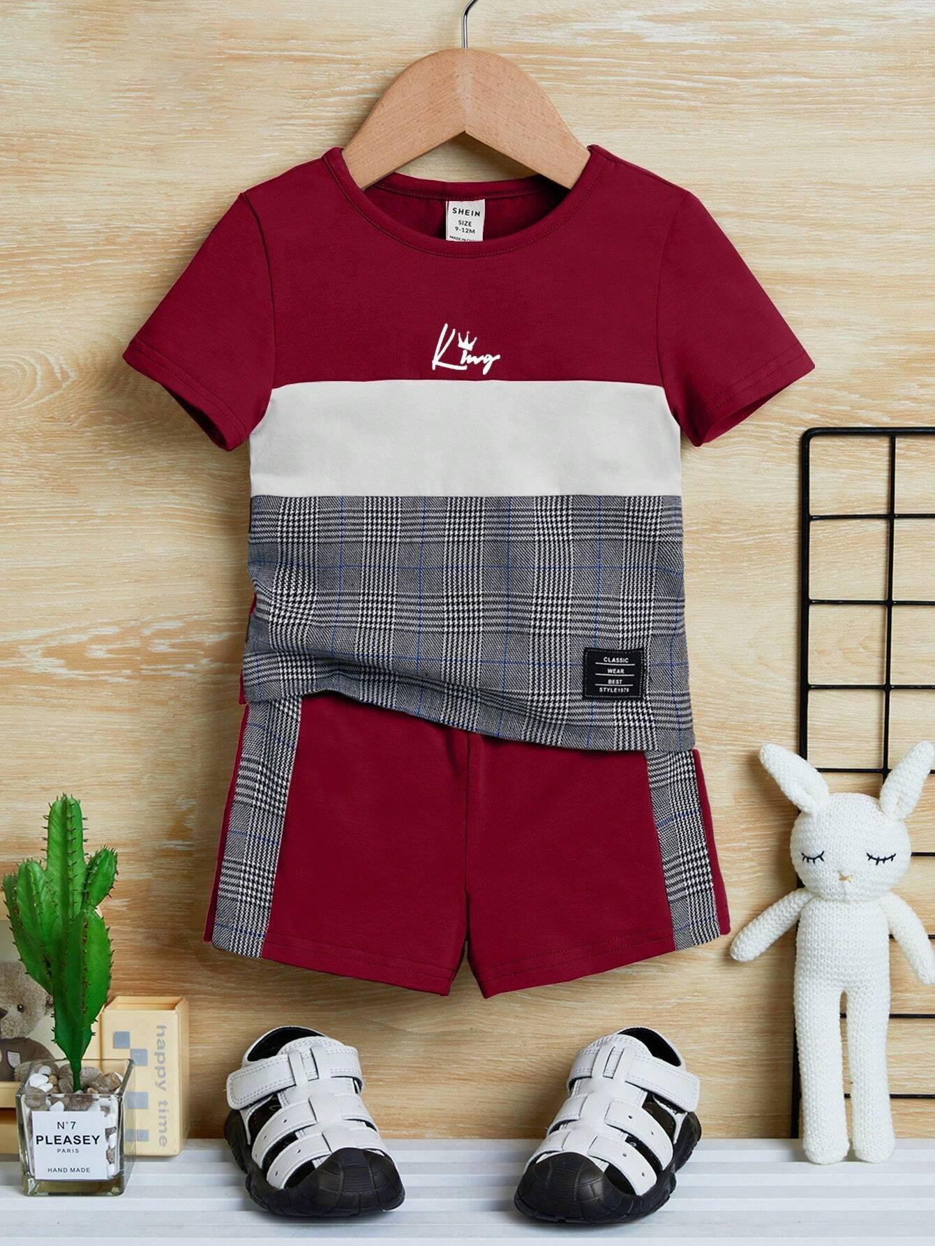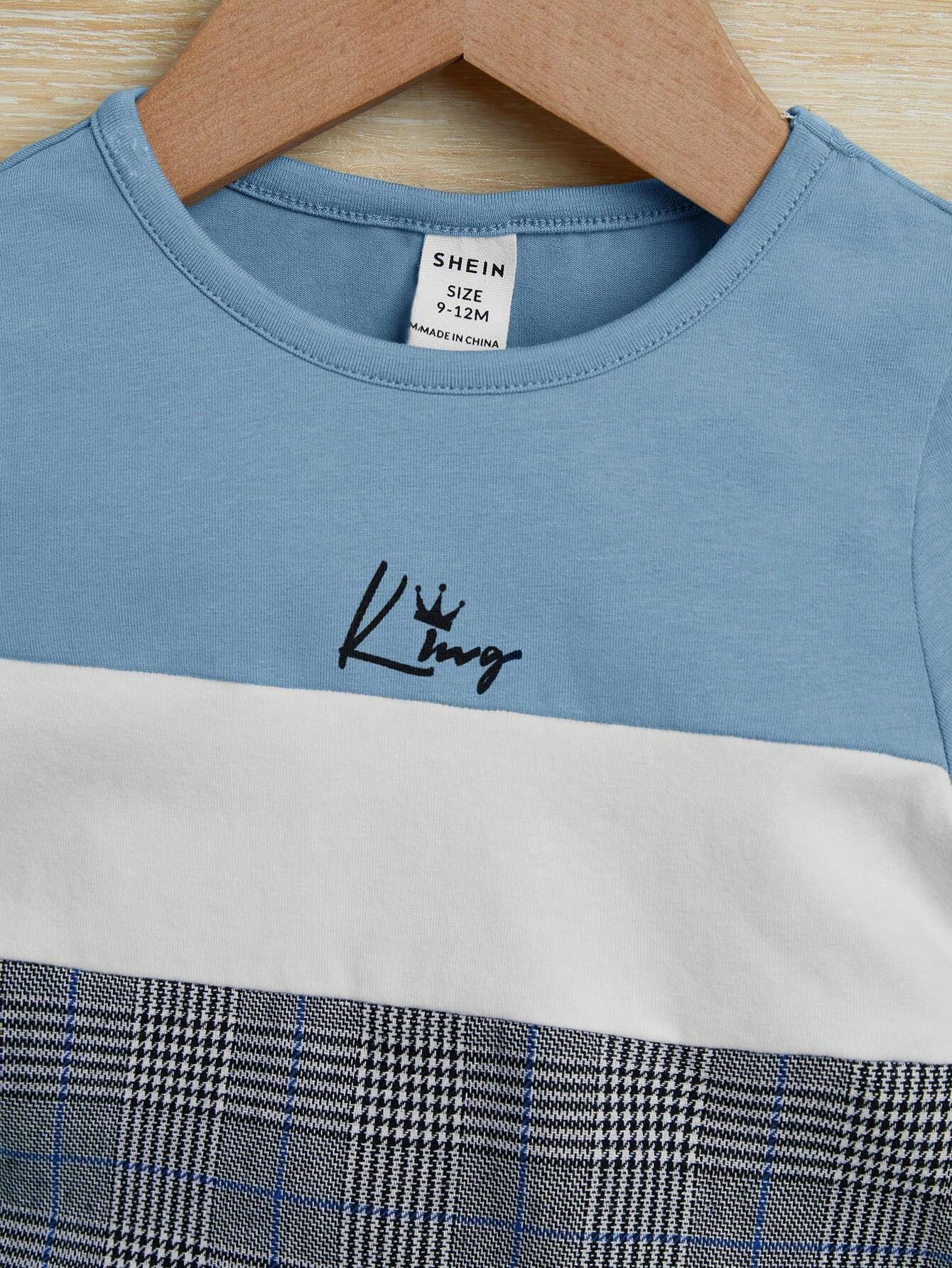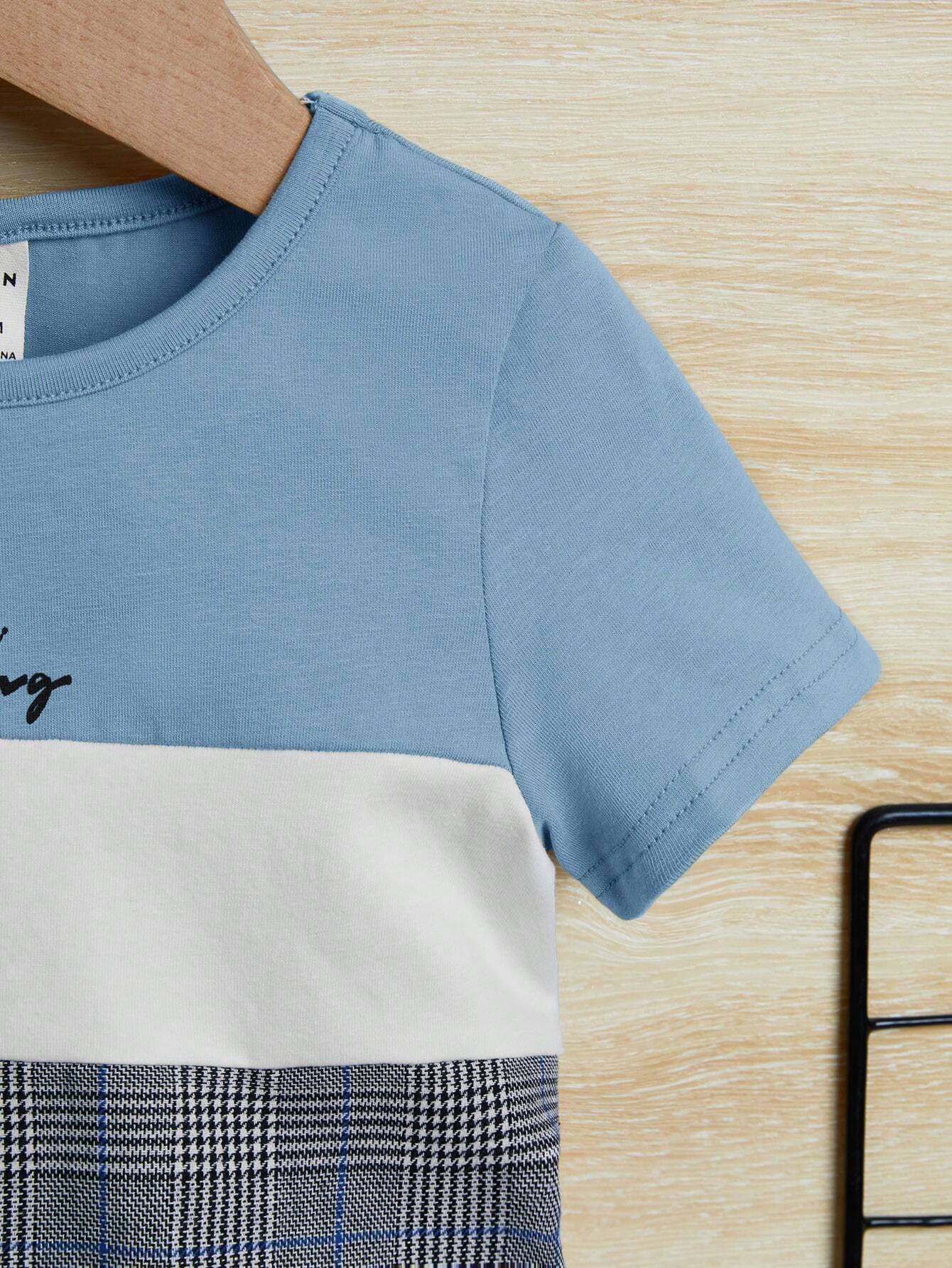 Shorts con camiseta de cuadros & con estampado de letra de color azul