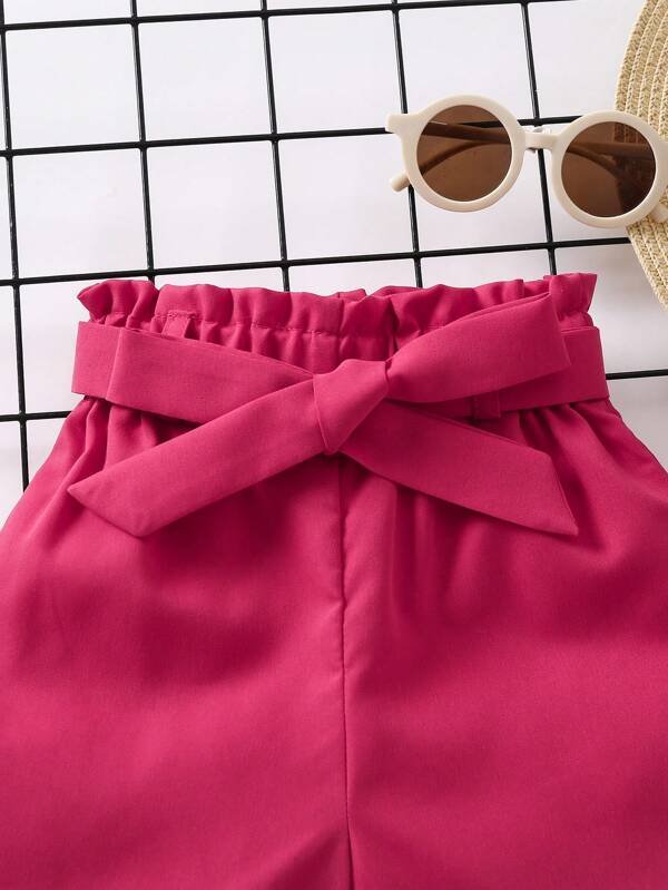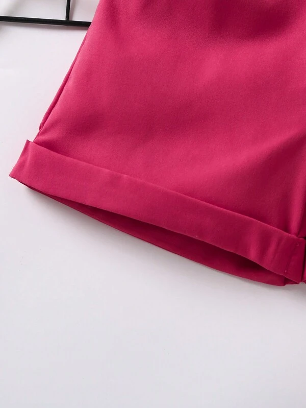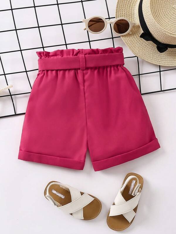 Shorts con cintur?n de cintura con volante bajo de doblez