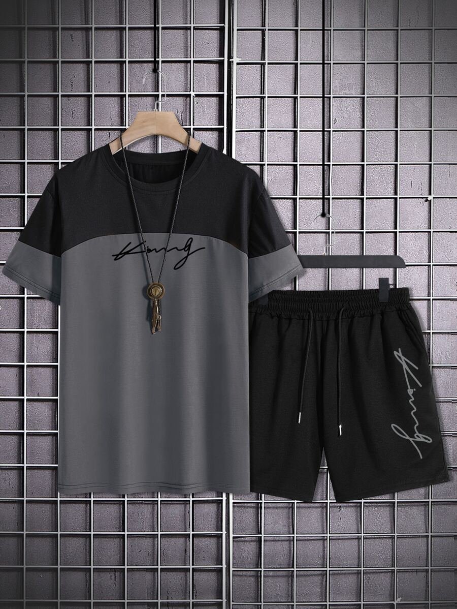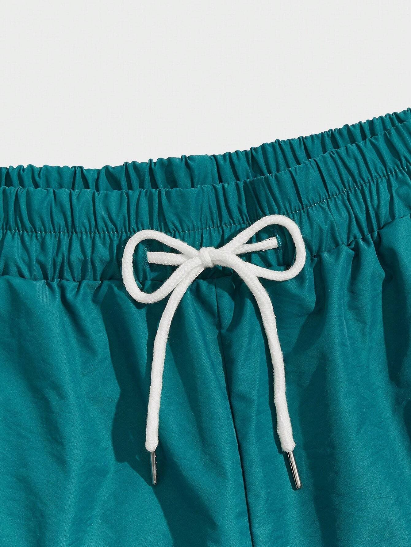 Shorts Con Cord?n Y Dise?o Gr?fico De Huella Digital Para Hombres