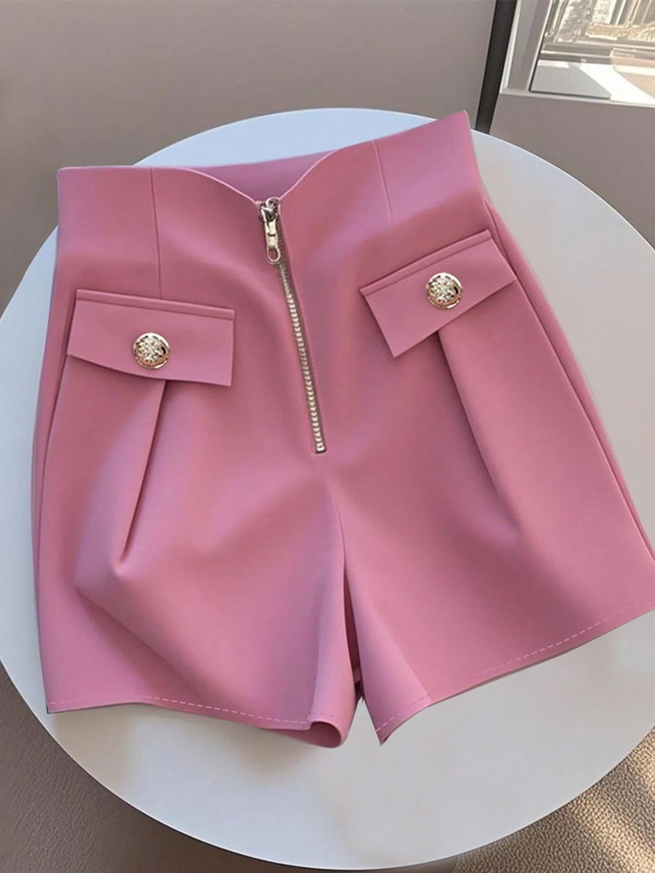 Shorts de verano casuales de mujer con cremallera frontal y bolsillos