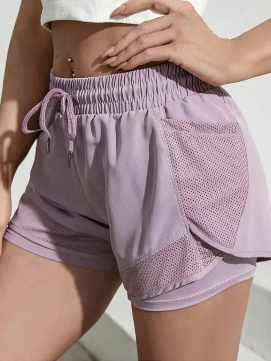 Shorts de yoga de 2 en 1 con tela de secado rápido y bolsillos de malla