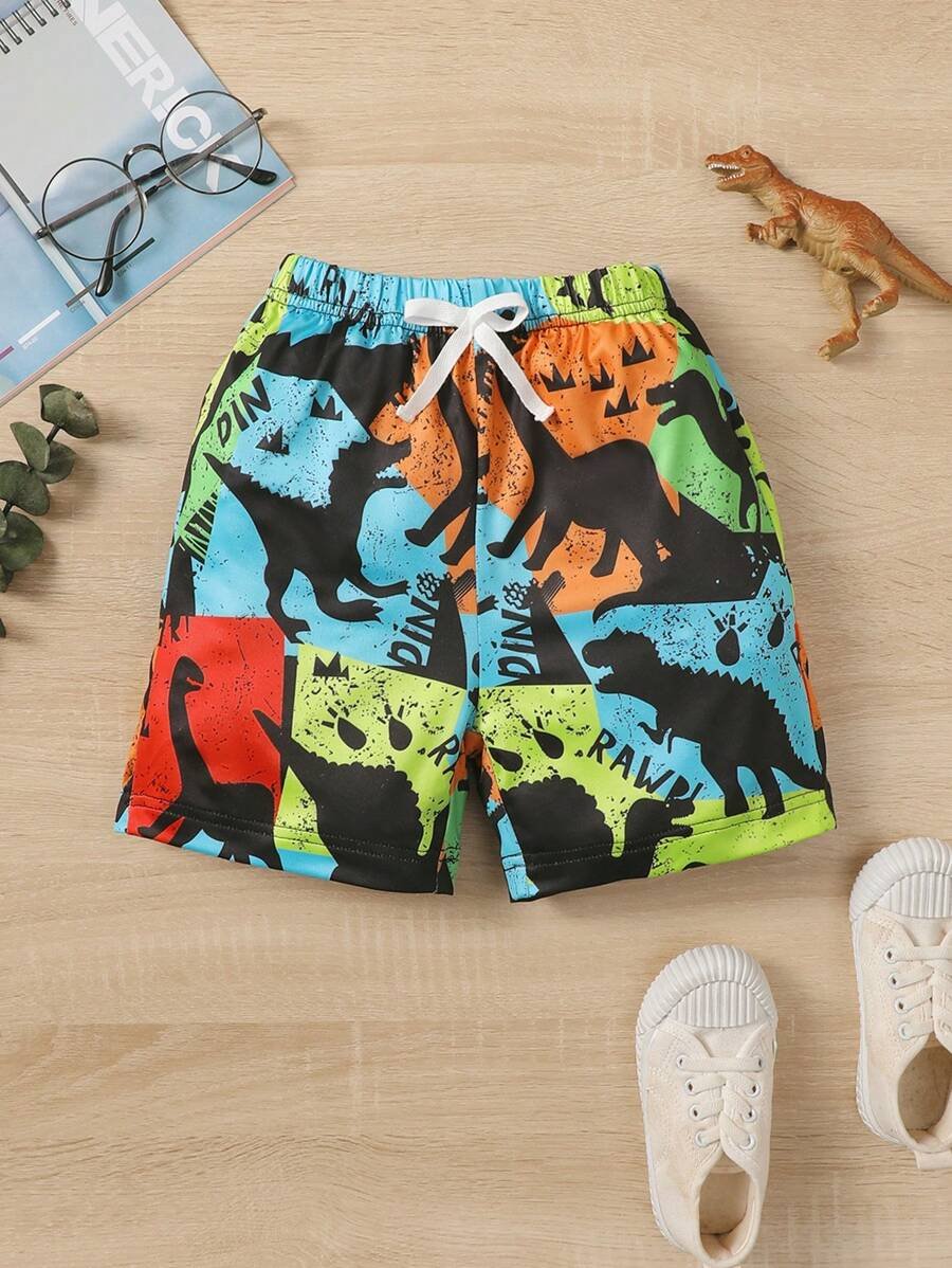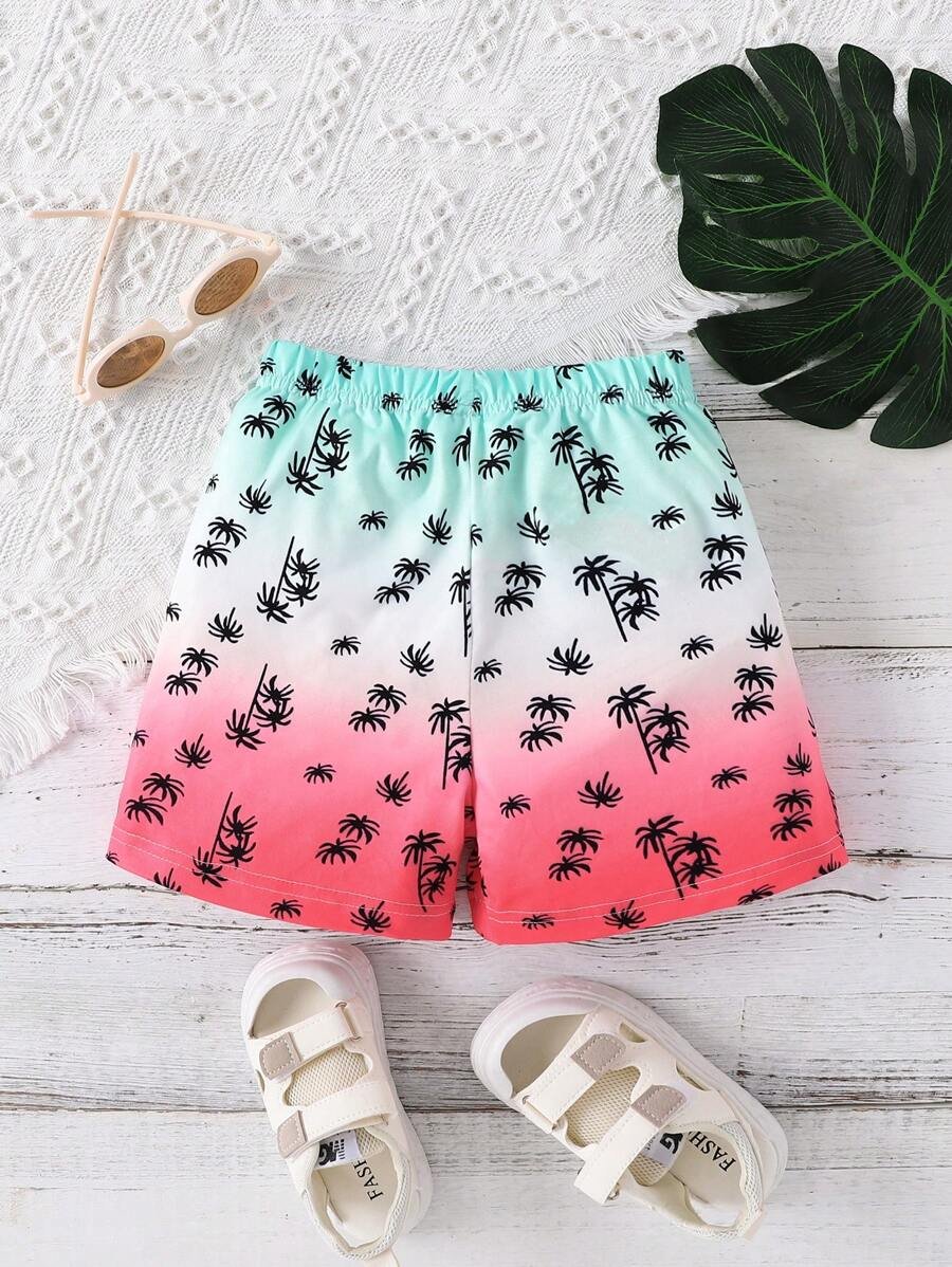 Shorts Degradados Con Estampado De ?rboles De Coco Para Ni?os Peque?os