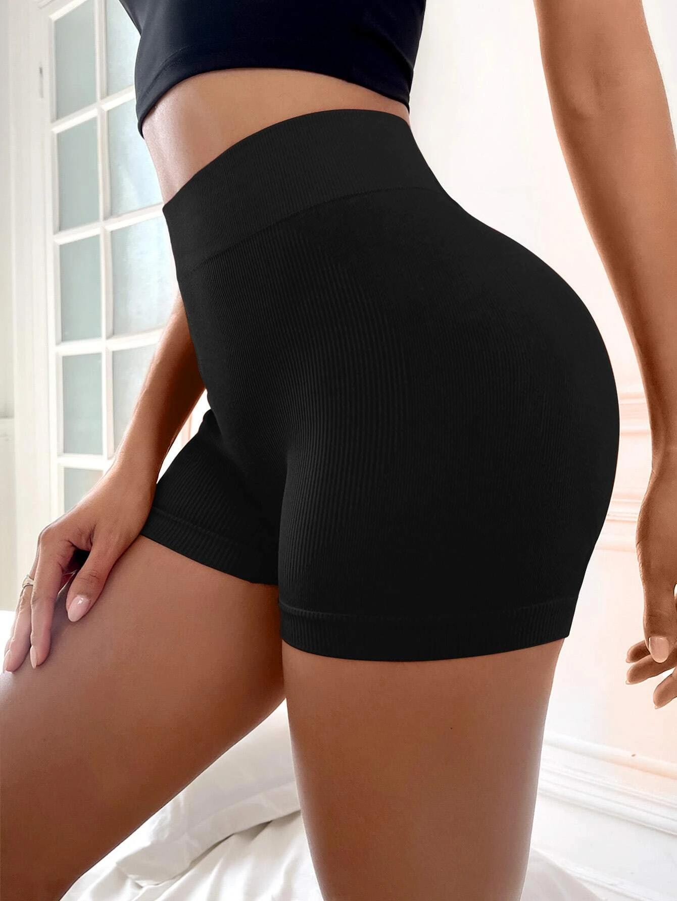 Shorts deportivos azules para la cintura con banda ancha sin costuras