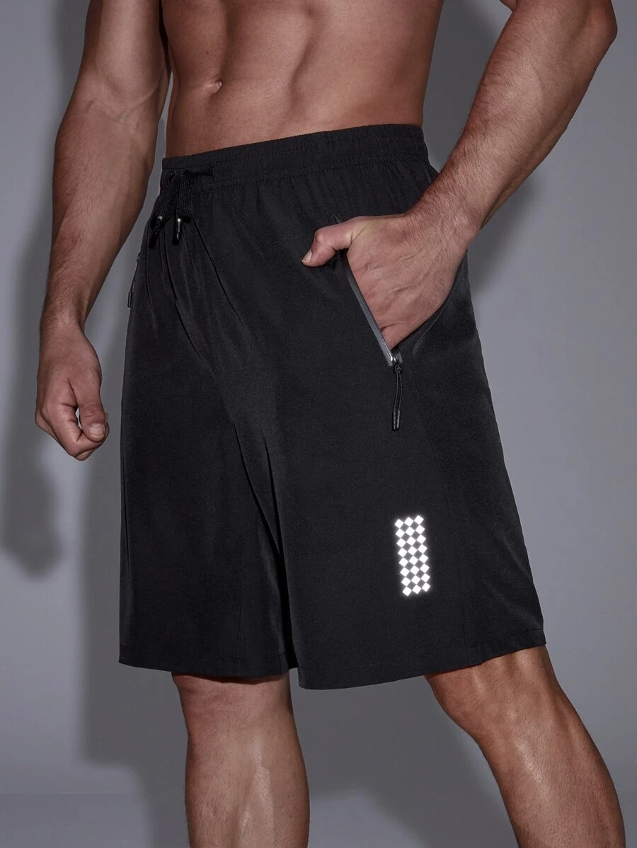 Shorts deportivos reflectante con estampado geom?trico de cintura con cord?n