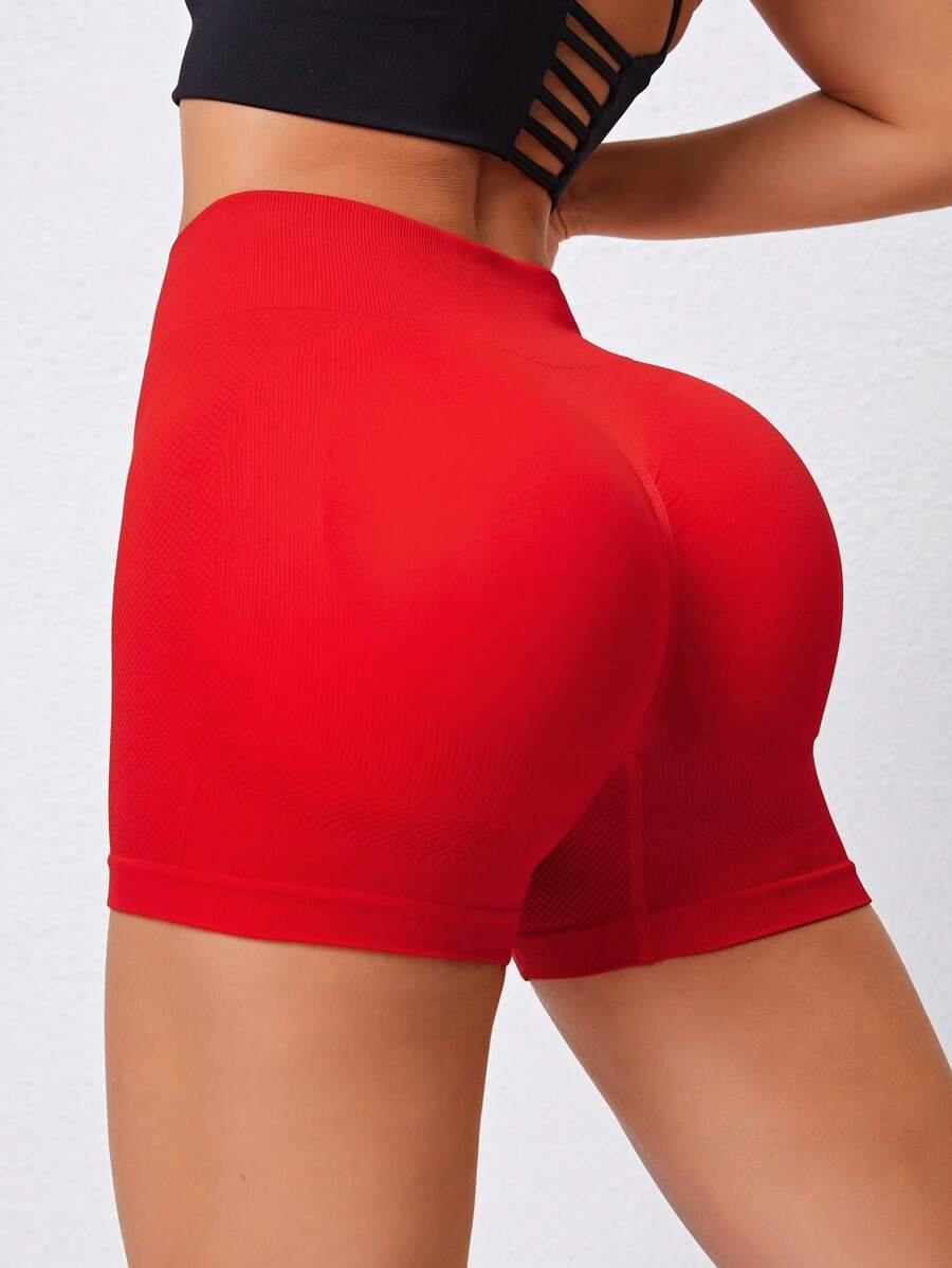 Shorts deportivos unicolor de cintura ancha