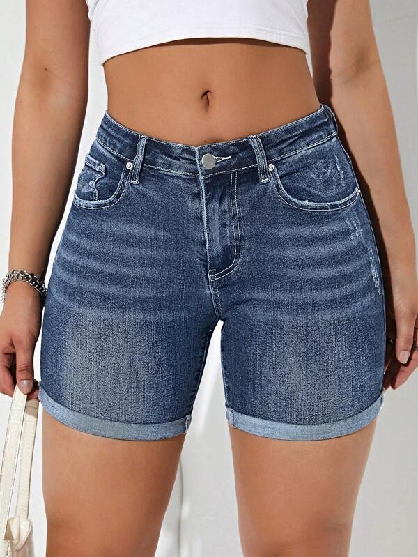 Shorts en mezclilla de talle alto bajo crudo