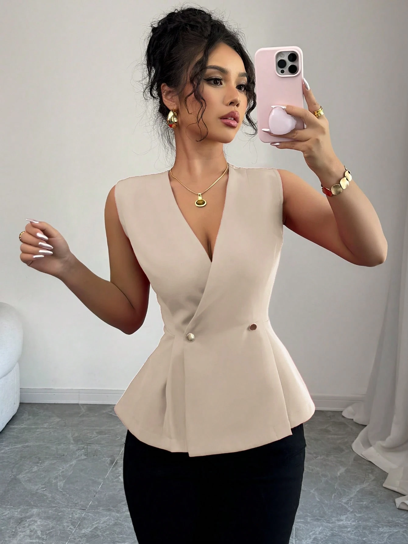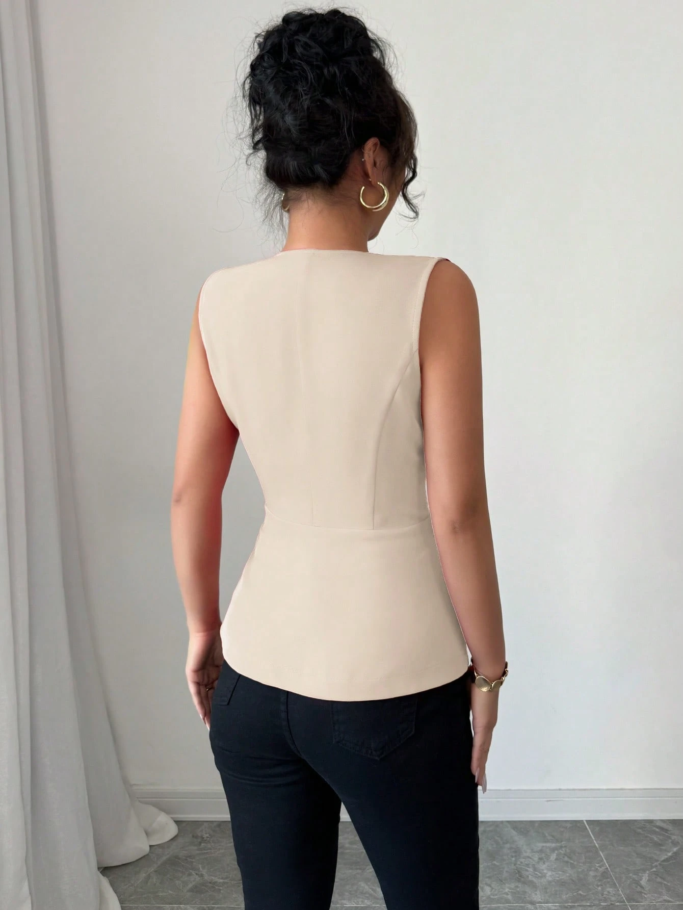 Blusa sin mangas elegante y casual para mujer con cuello en V
