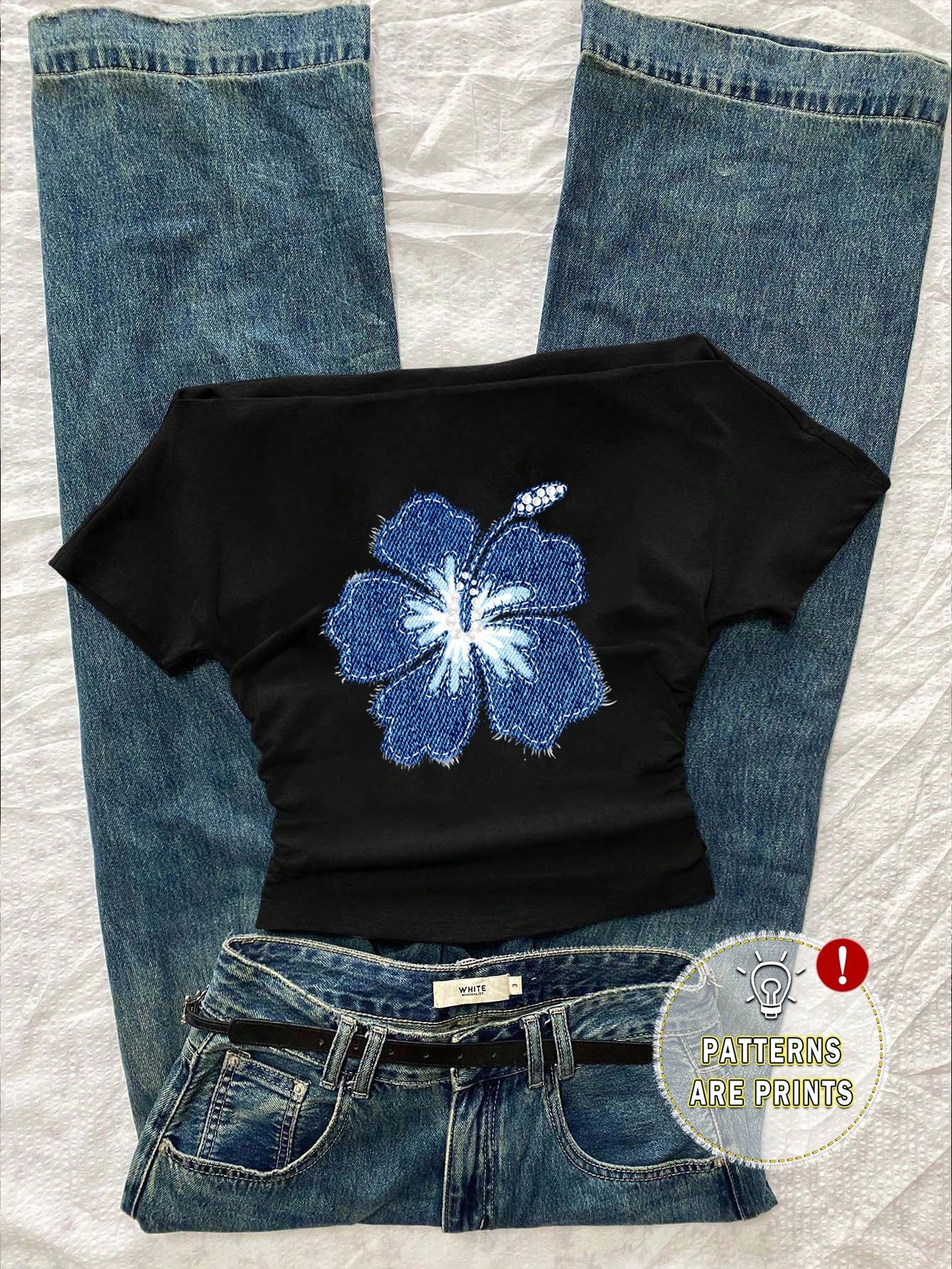 Top ajustado con cintura fruncida para salir, camiseta de manga corta con estampado