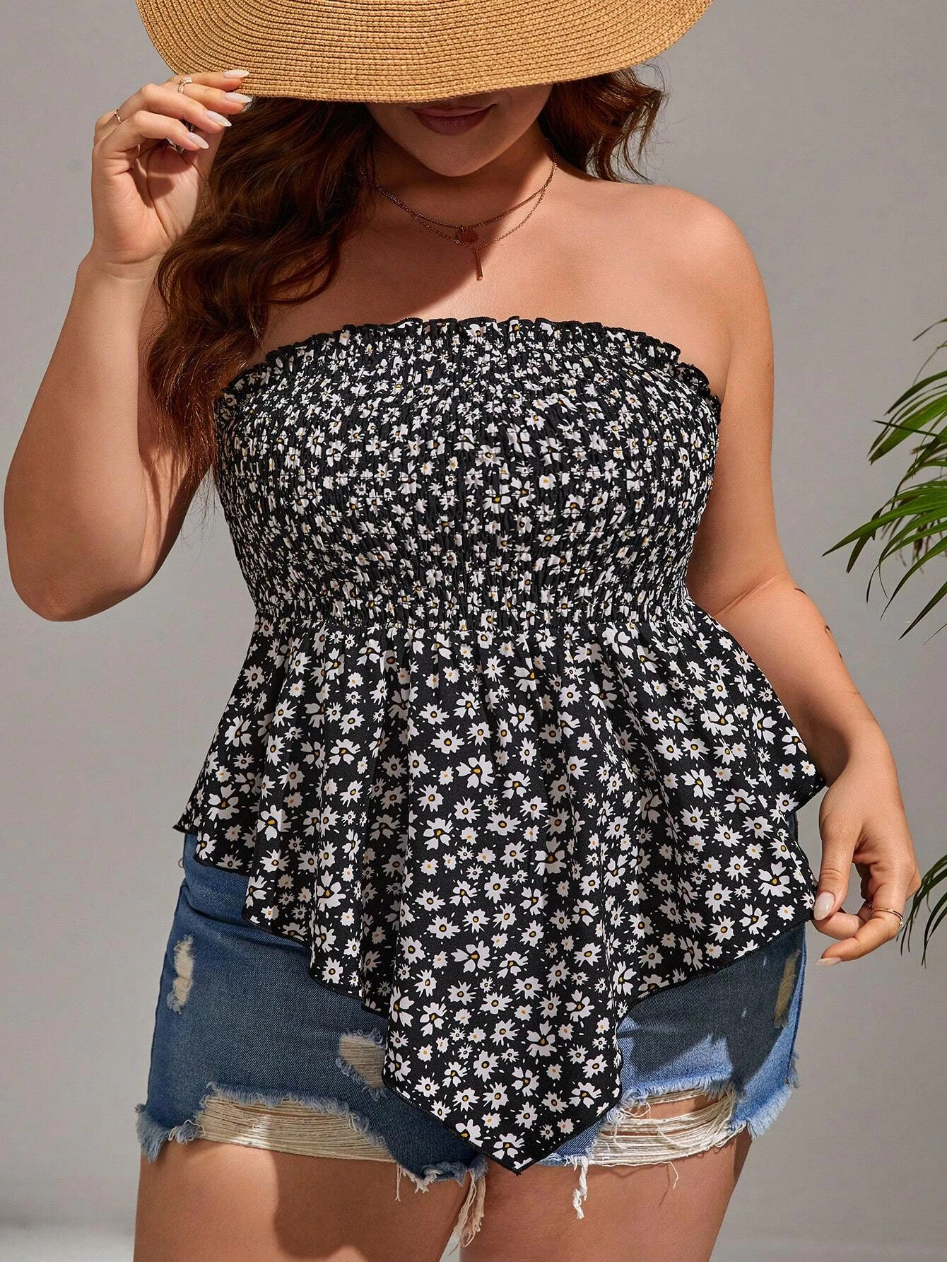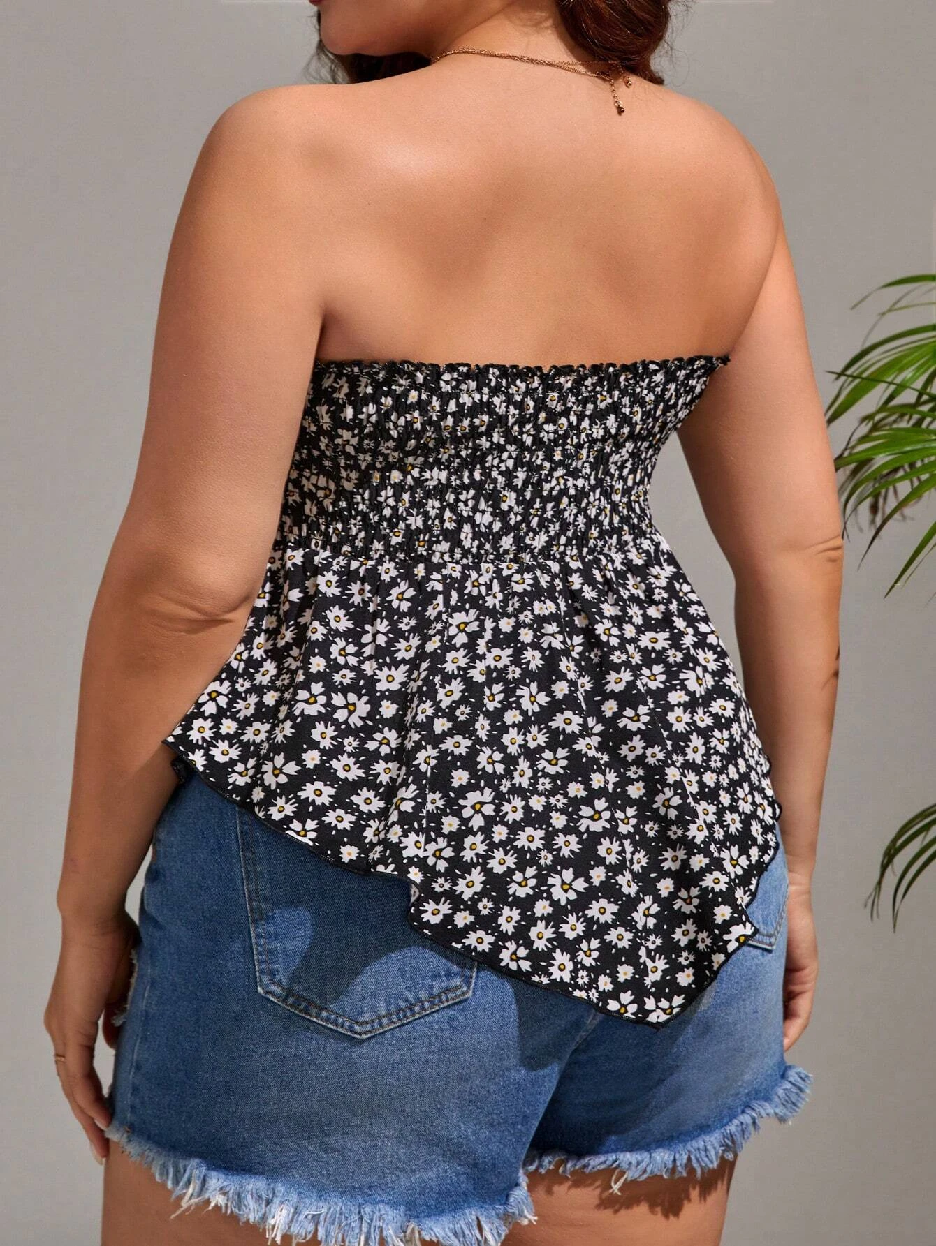 Top bandeau con estampado floral bajo asim?trico