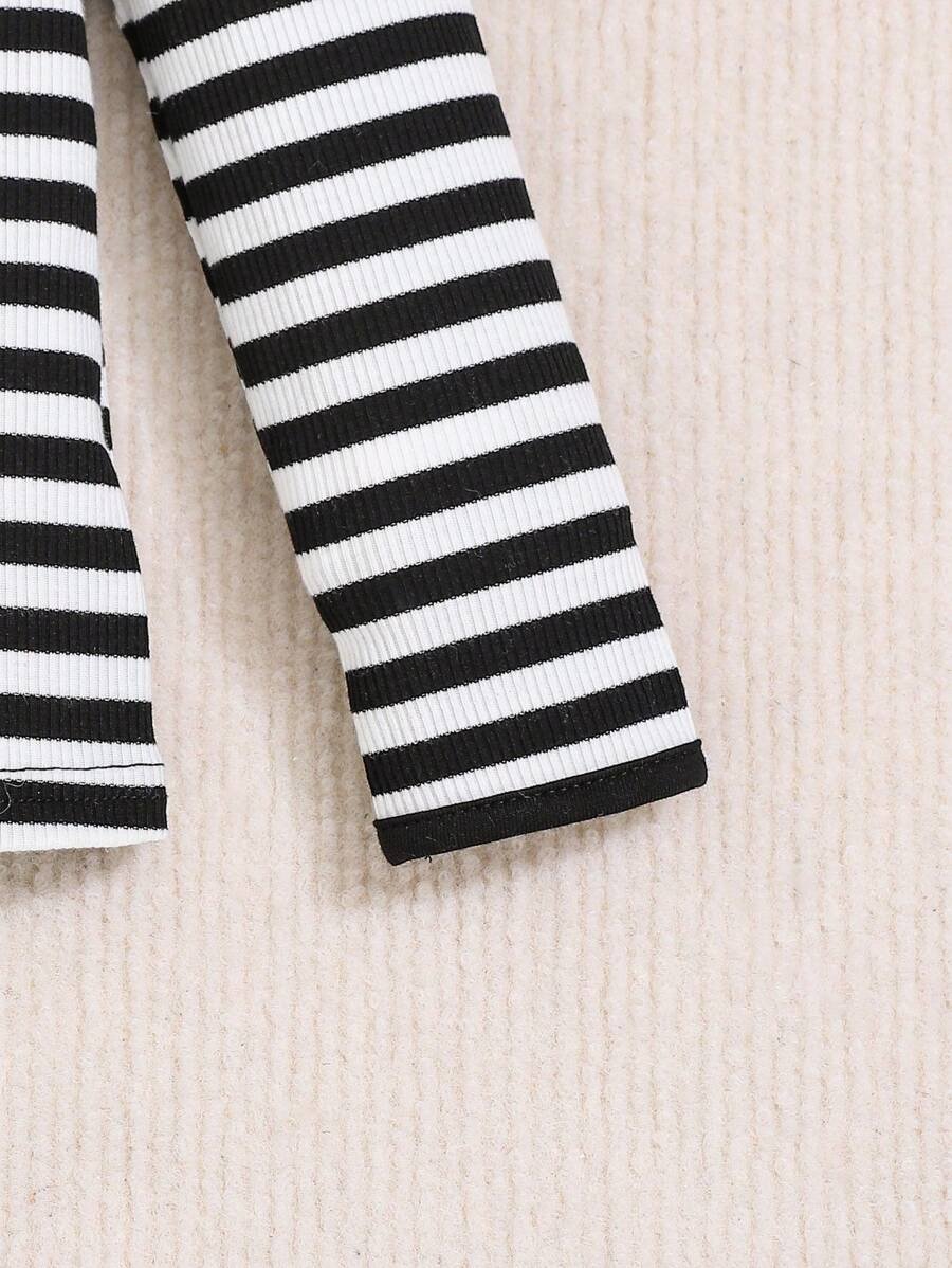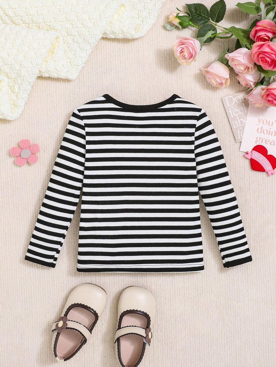 Top Casual De Punto A Rayas Para Beb? Ni?a Con Estampado De Corazones