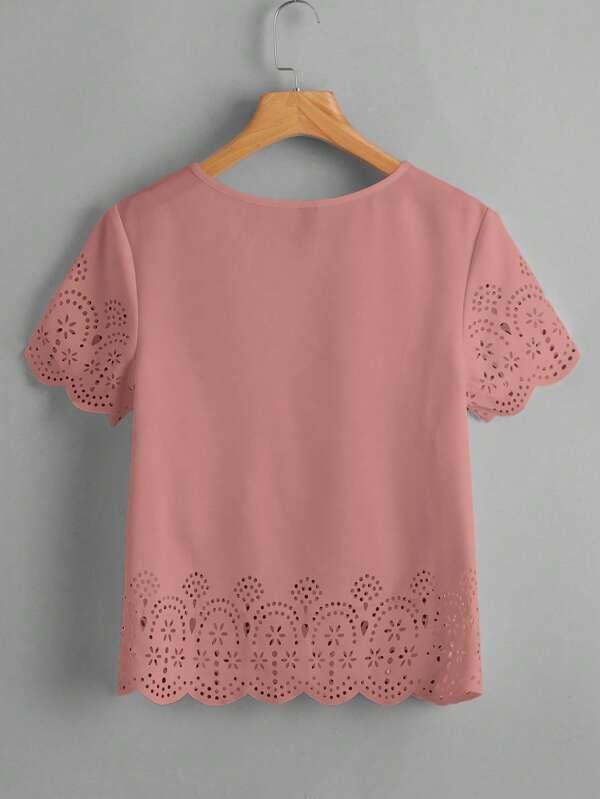 Top cortado l?ser ribete en abanico unicolor