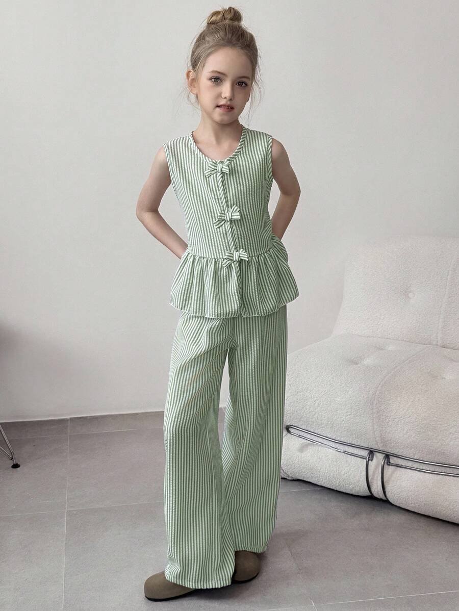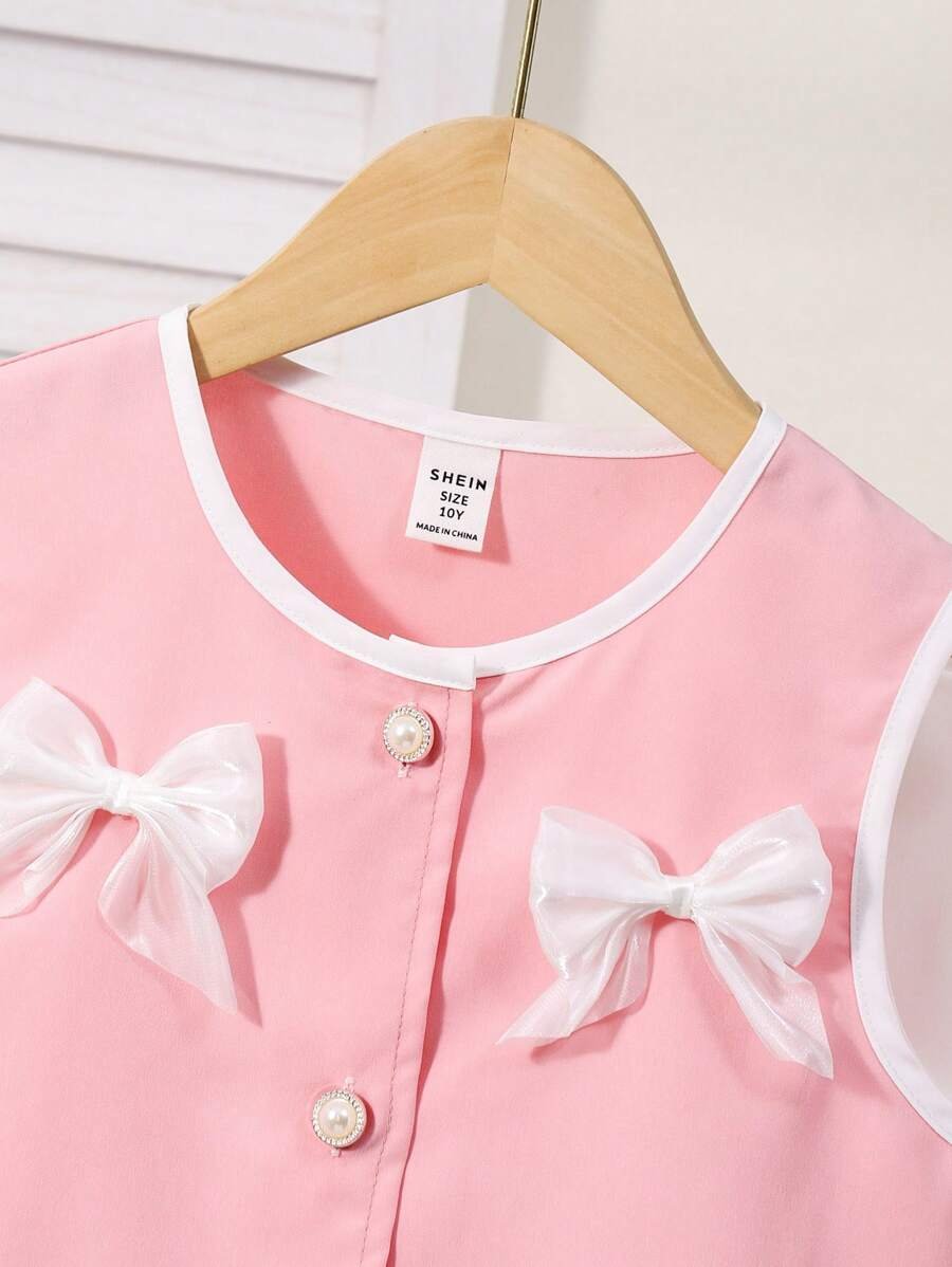 Top de chaleco negro con lazo blanco combinado con pantalones blancos