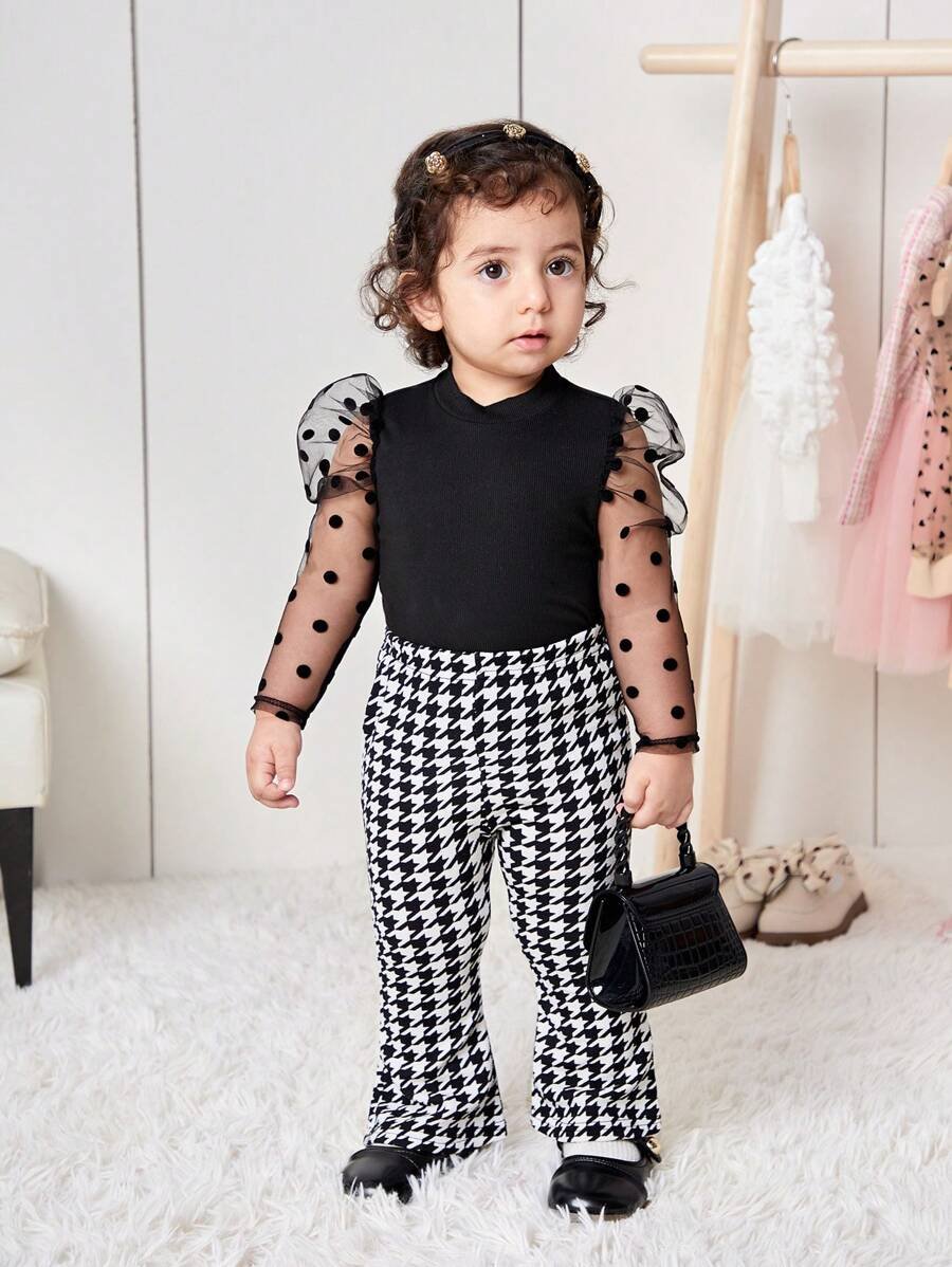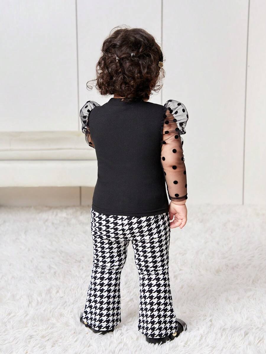 Top de malla con lunares y pantalones acampanados para niña bebé