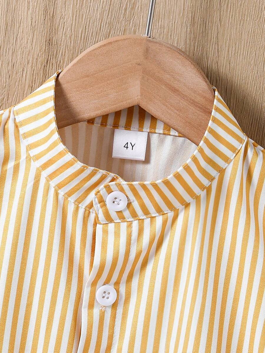 top de manga corta con botones delanteros a rayas y pantalones cortos