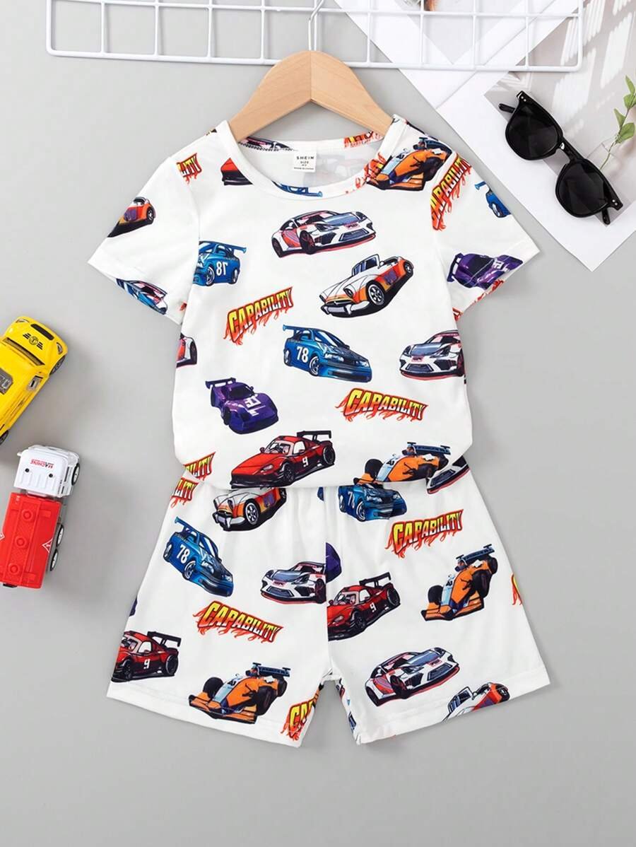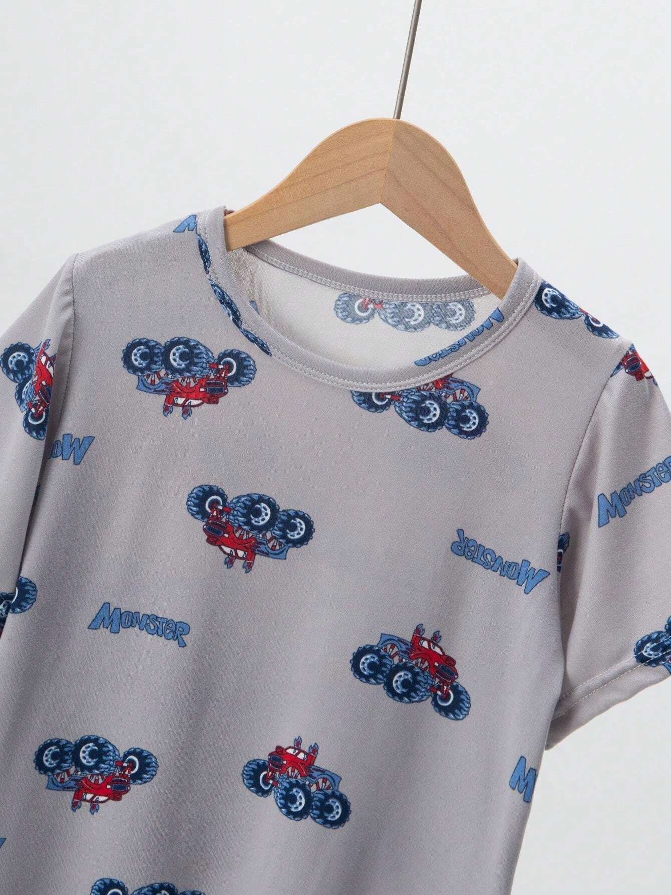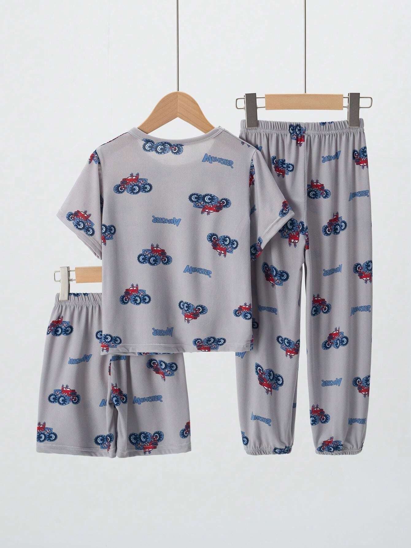 Top de manga corta con impresi?n de tractores para j?venes que incluye 3 piezas