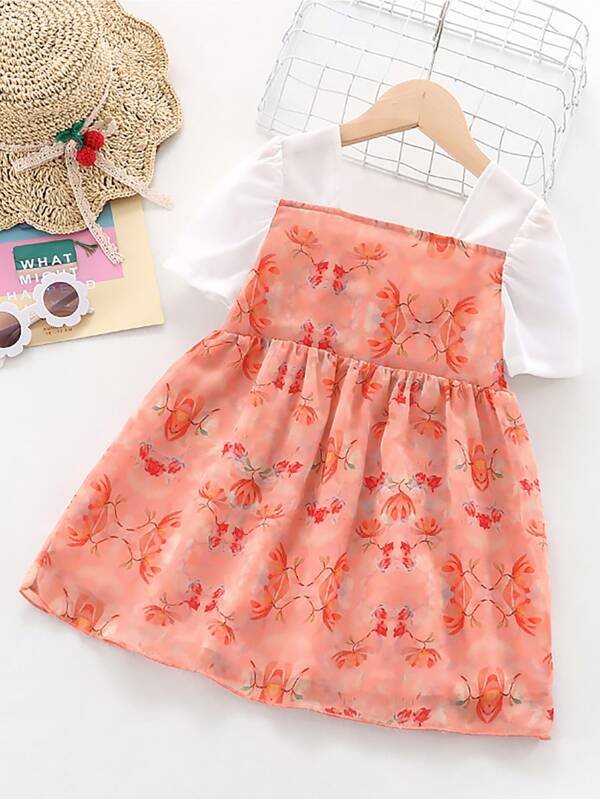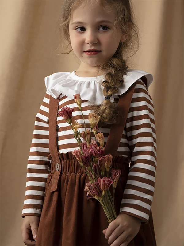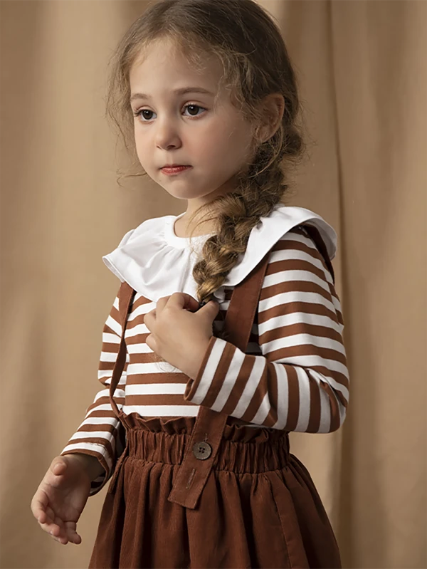 Top de manga larga con volantes a rayas y falda con tirantes para ni?a peque?a
