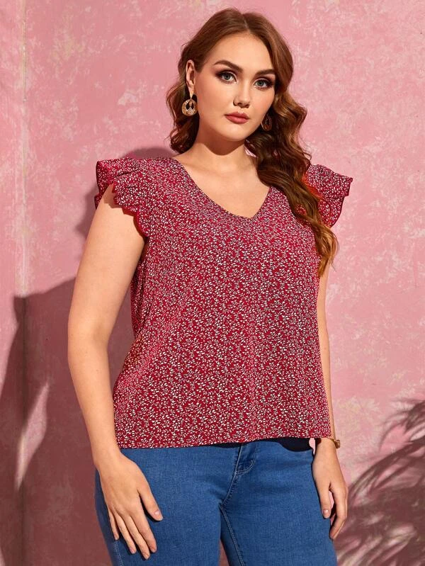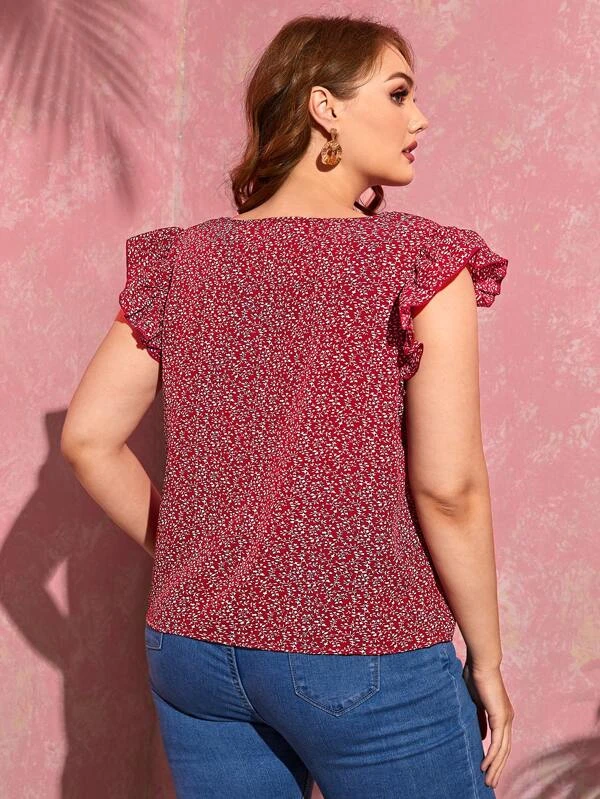 Top de manga mariposa con estampado de plantas