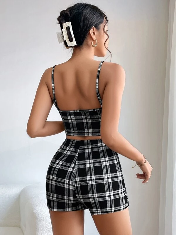 Top de tirantes con estampado de cuadros & Skort bajo cruzado