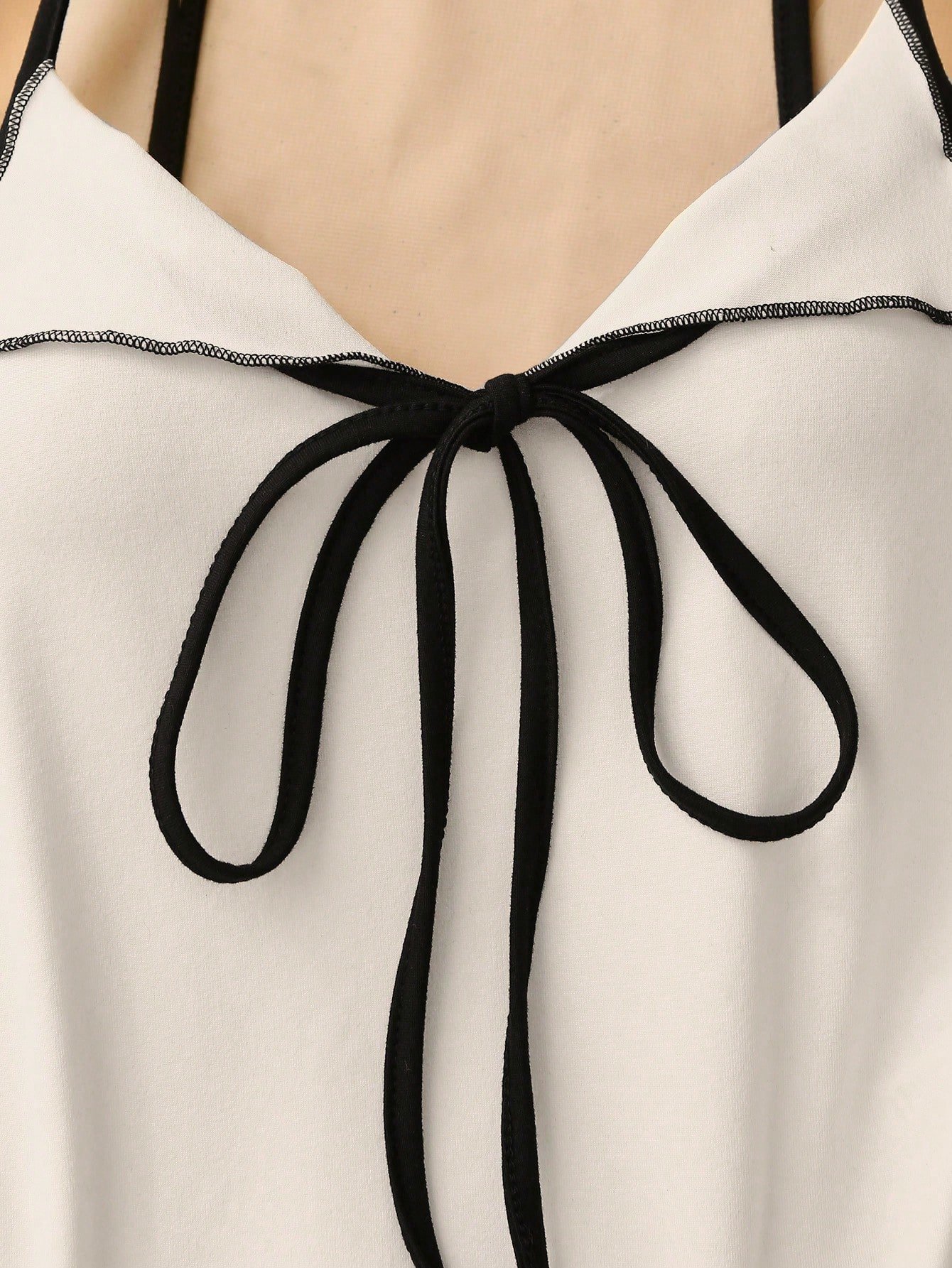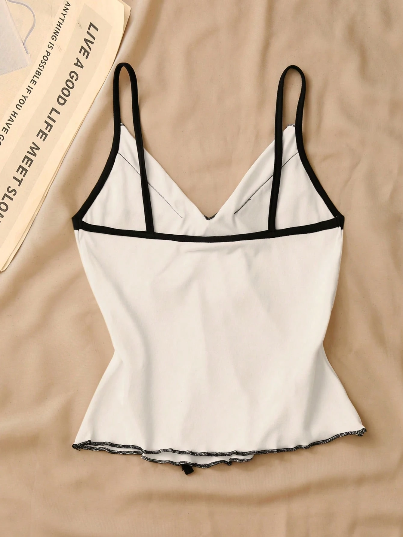 Top de tirantes con lazo y ribete de lechuga en contraste