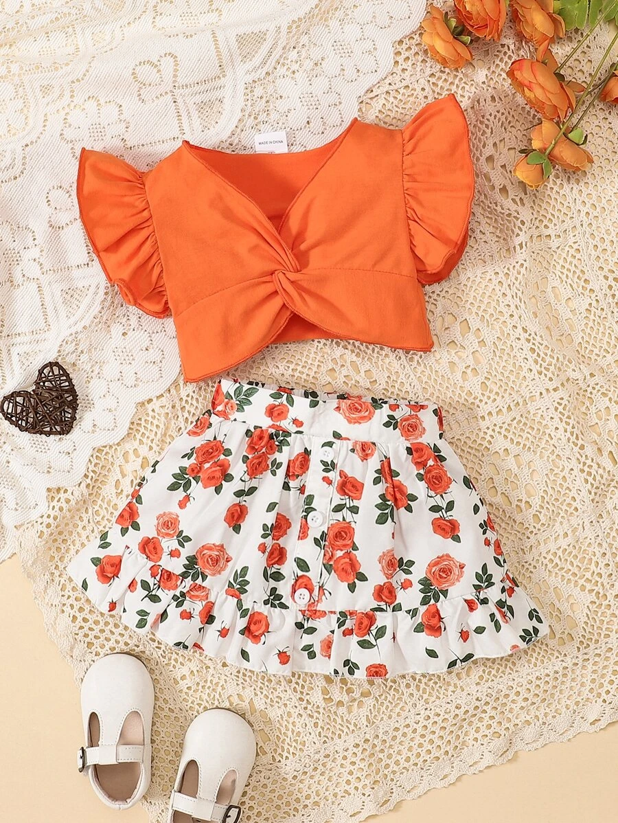 Top De Tirantes Con Ribete De Volantes Para Niña Y Pantalones Cortos Con Estampado De Frutas