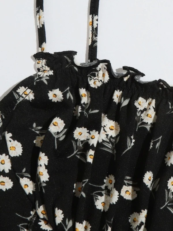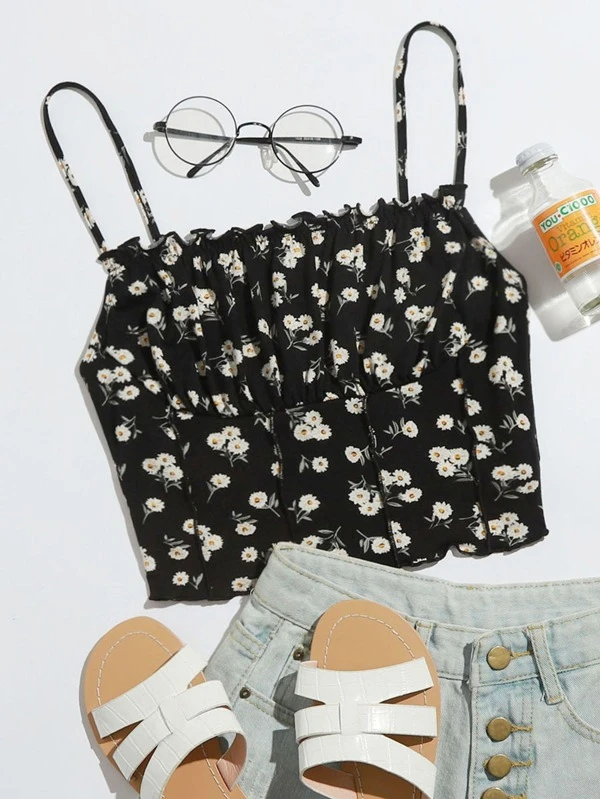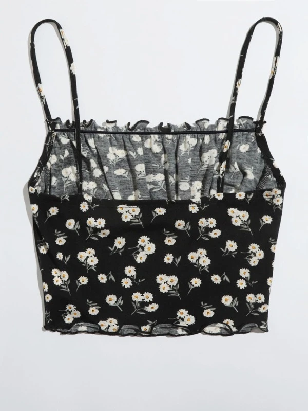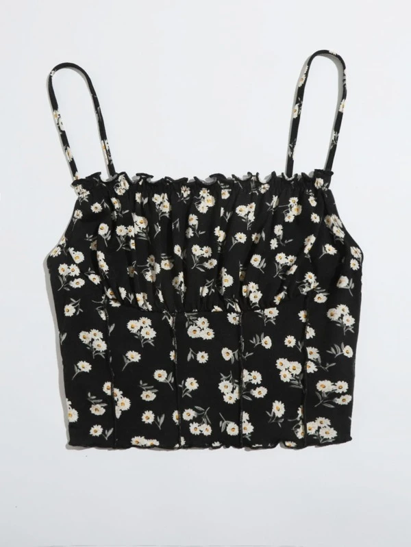 Top de tirantes floral de margarita con costura delantera