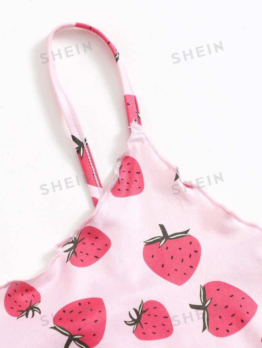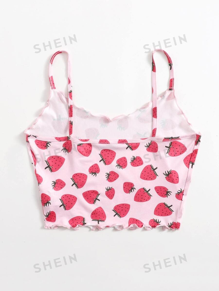 Top de tirantes ribete en forma de lechuga con estampado de fresa