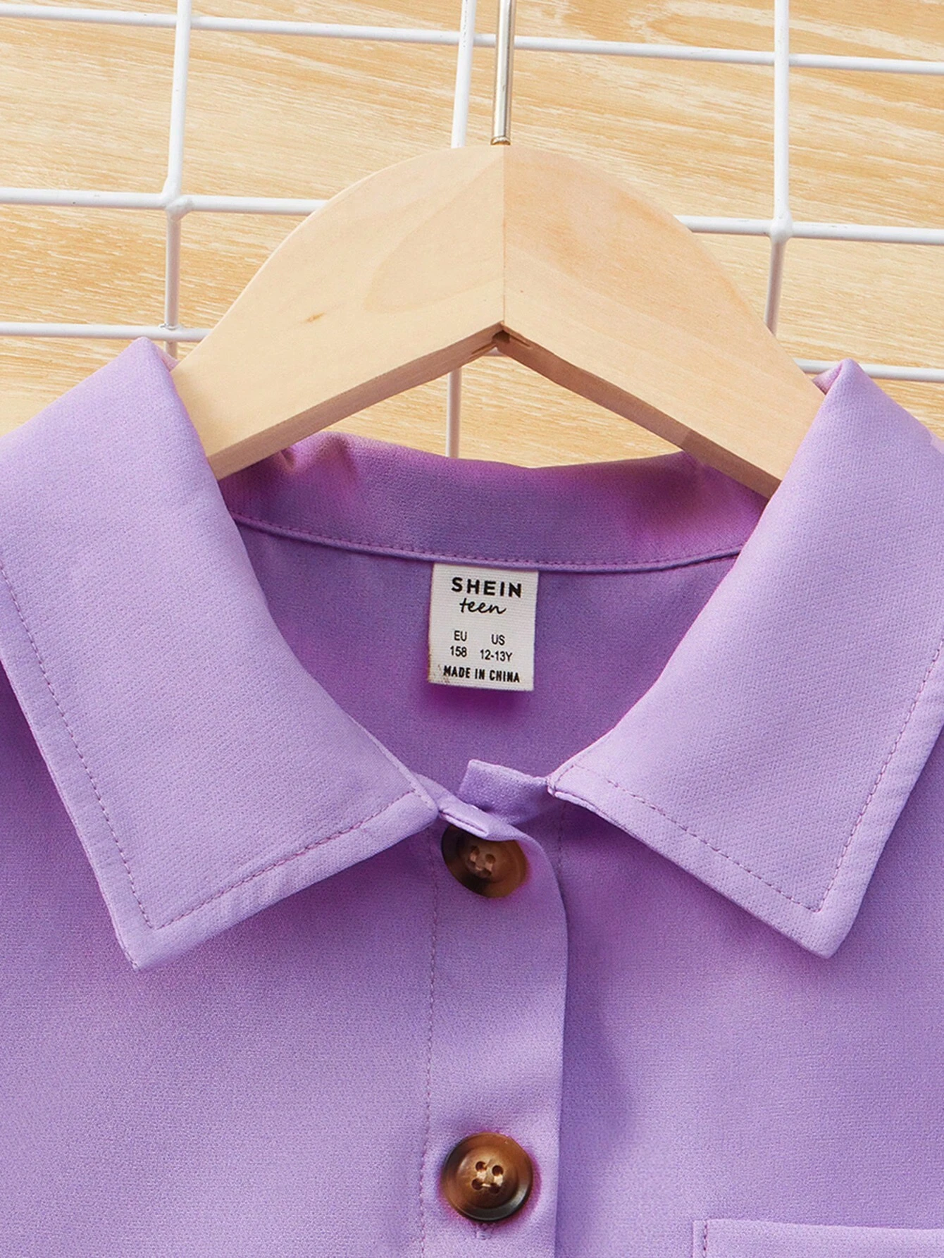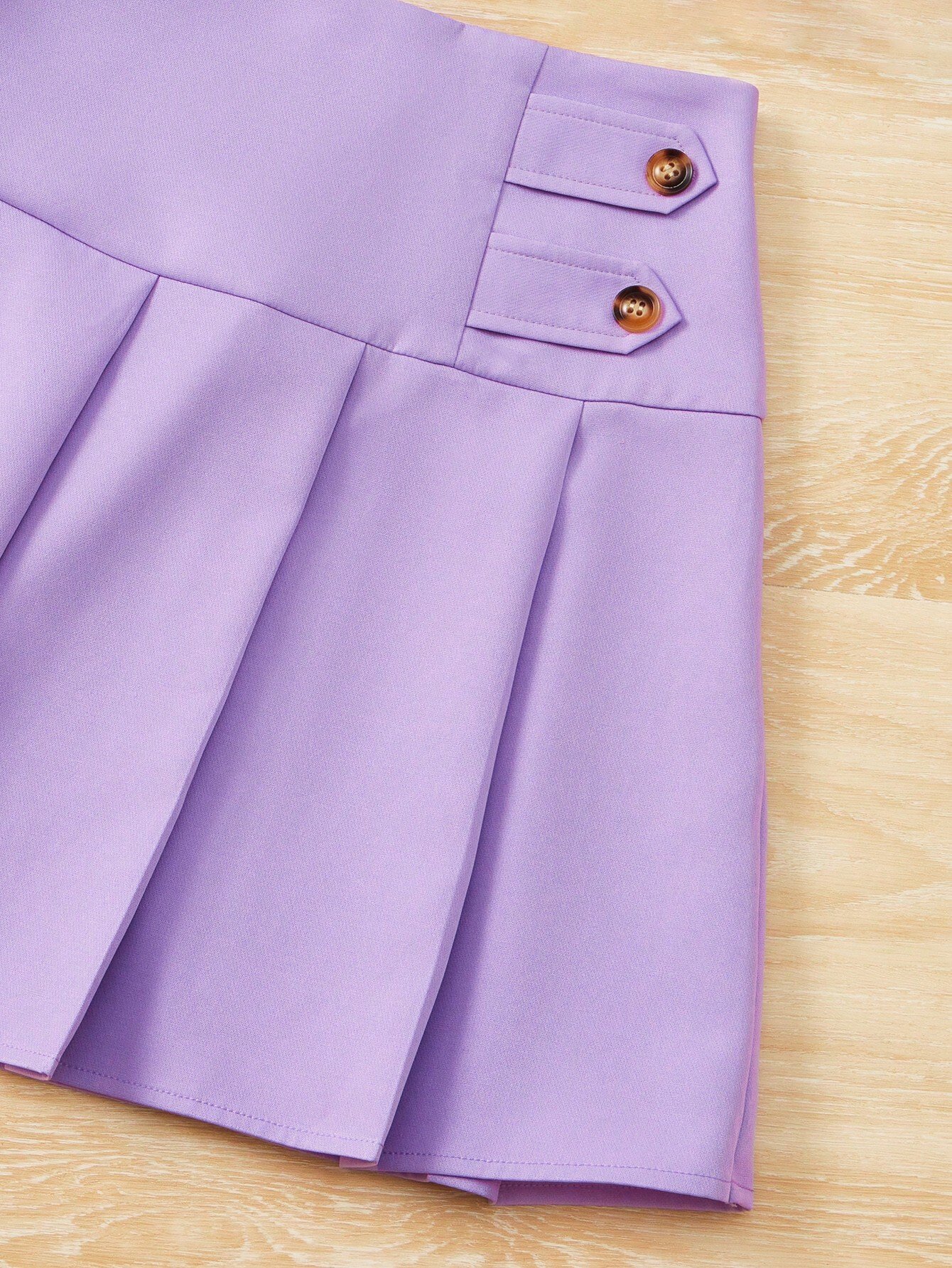 Top de tirantes unicolor & Falda fruncido & Blusa con bot?n