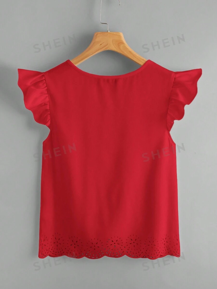 Top ribete con fruncido cortado l?ser ribete en abanico